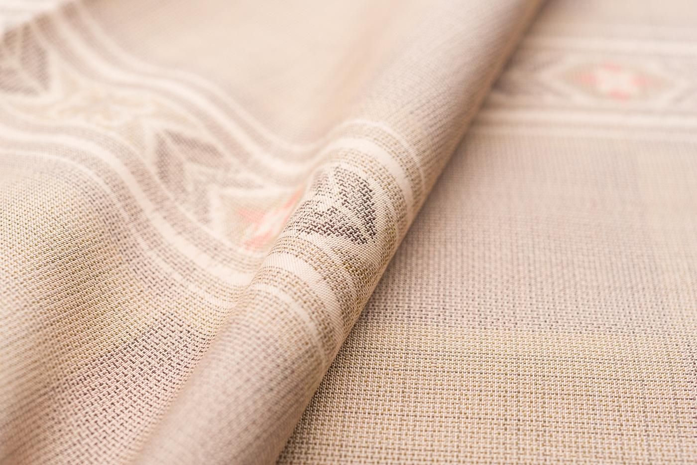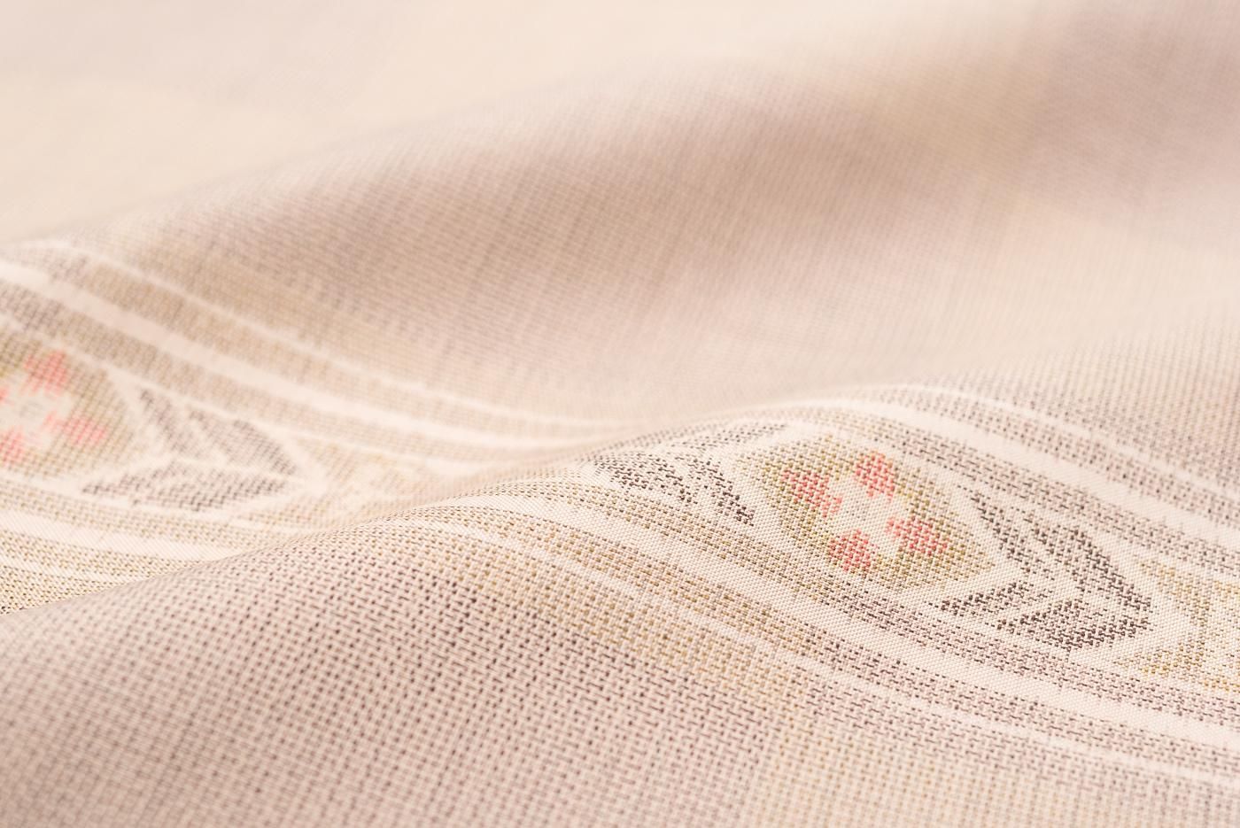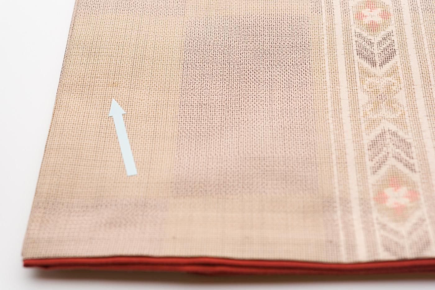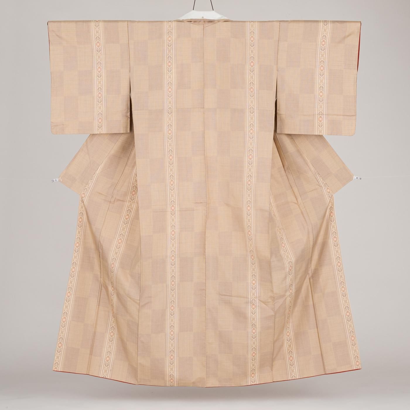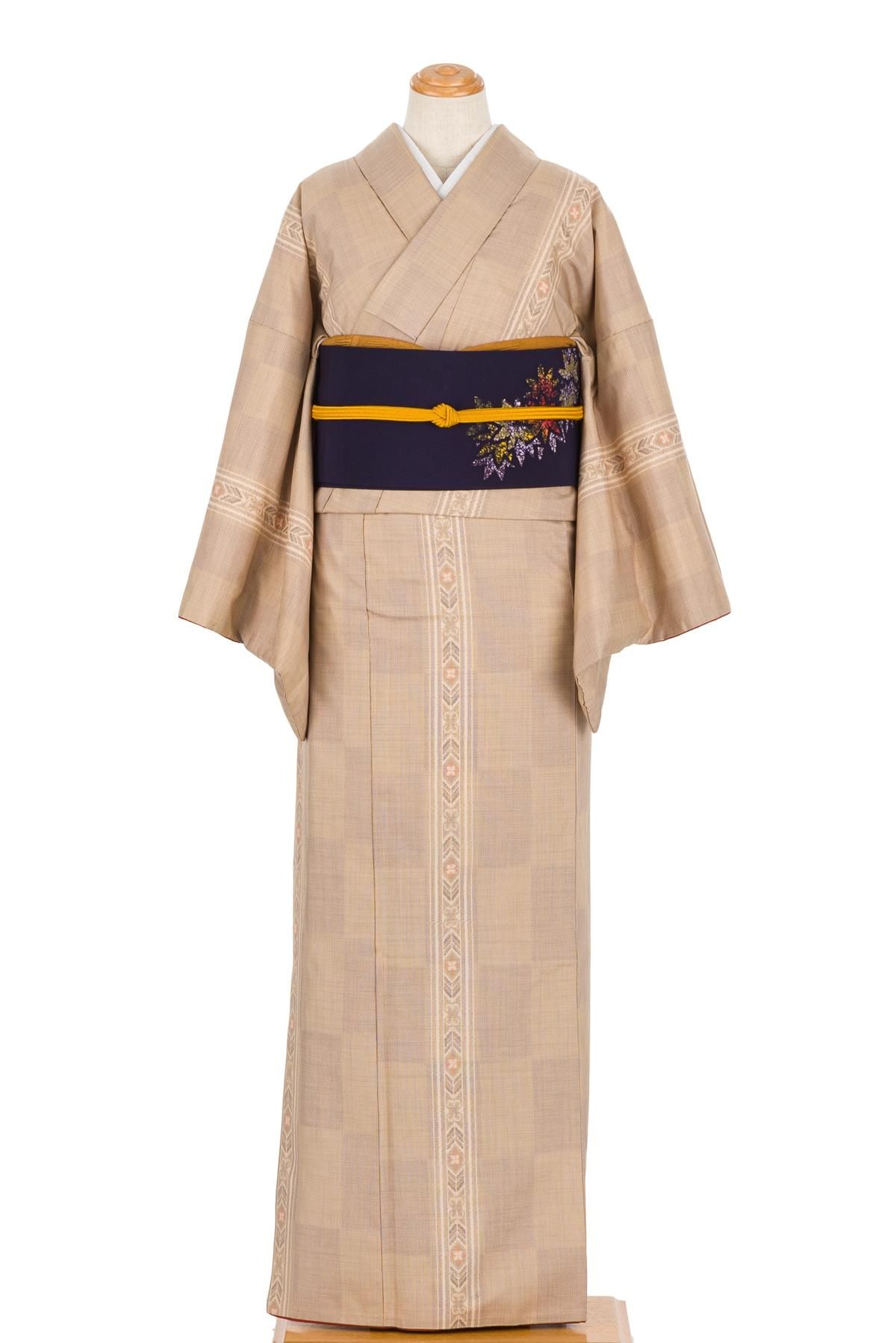 淡いお色目の市松柄にチロリアンテープのような可愛らしい縞模様を重ねた大人可愛いデザインです。