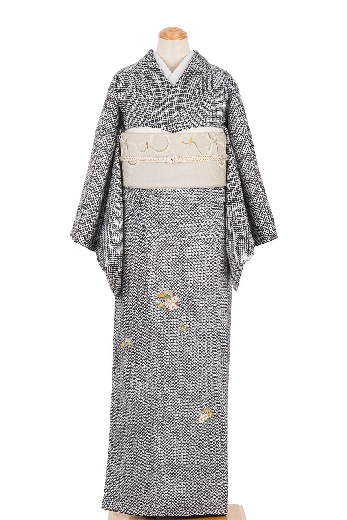 モノトーンの総鹿の子絞りが美しい付下げです。