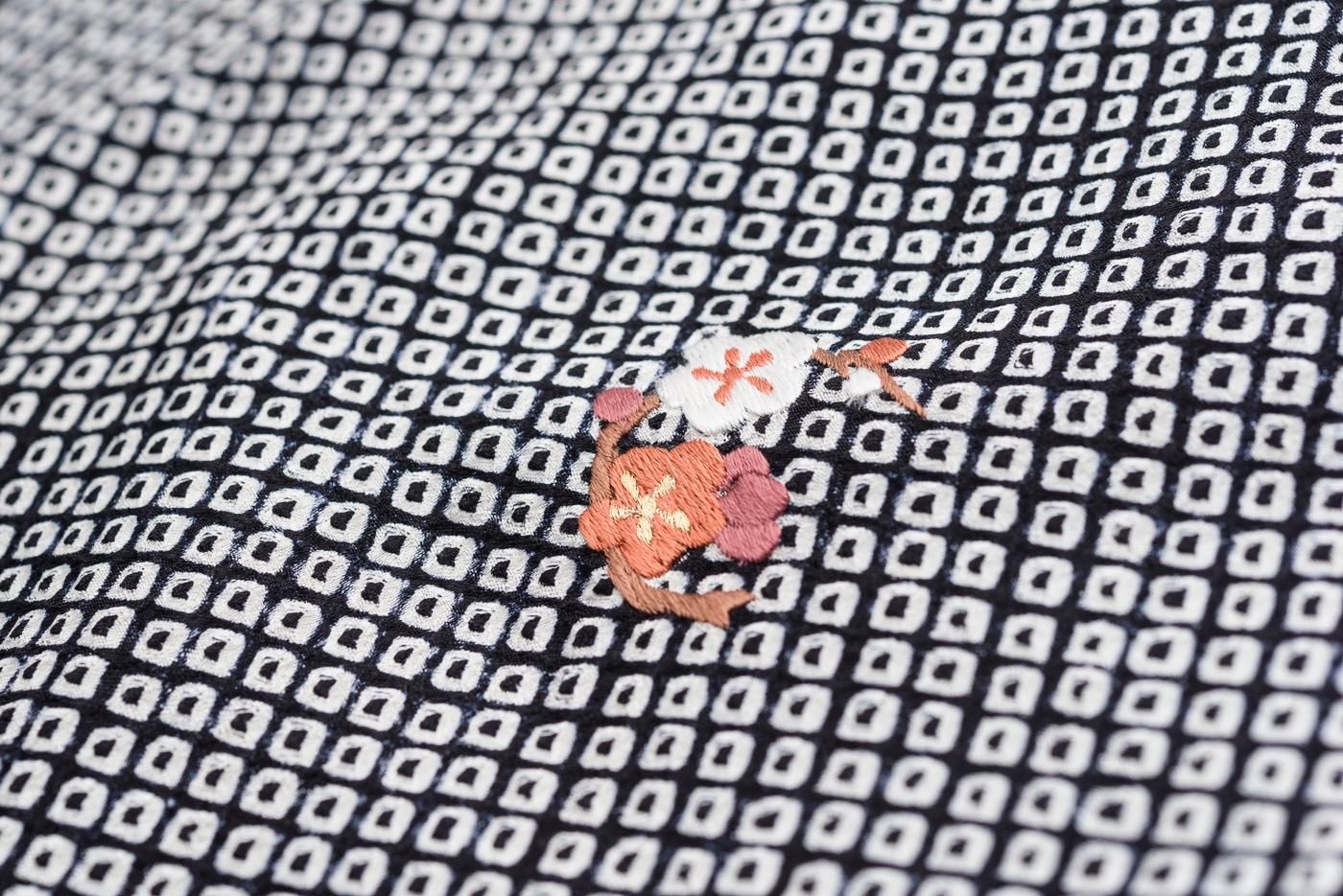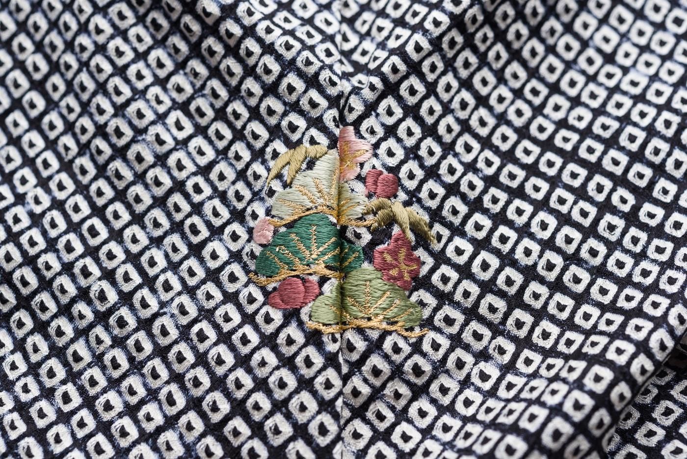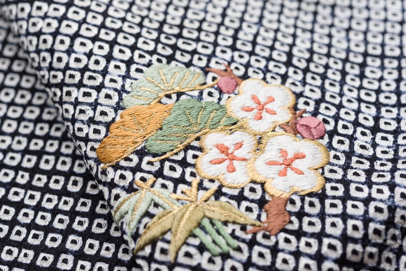 裾に散らした刺繍の柄は松竹梅。