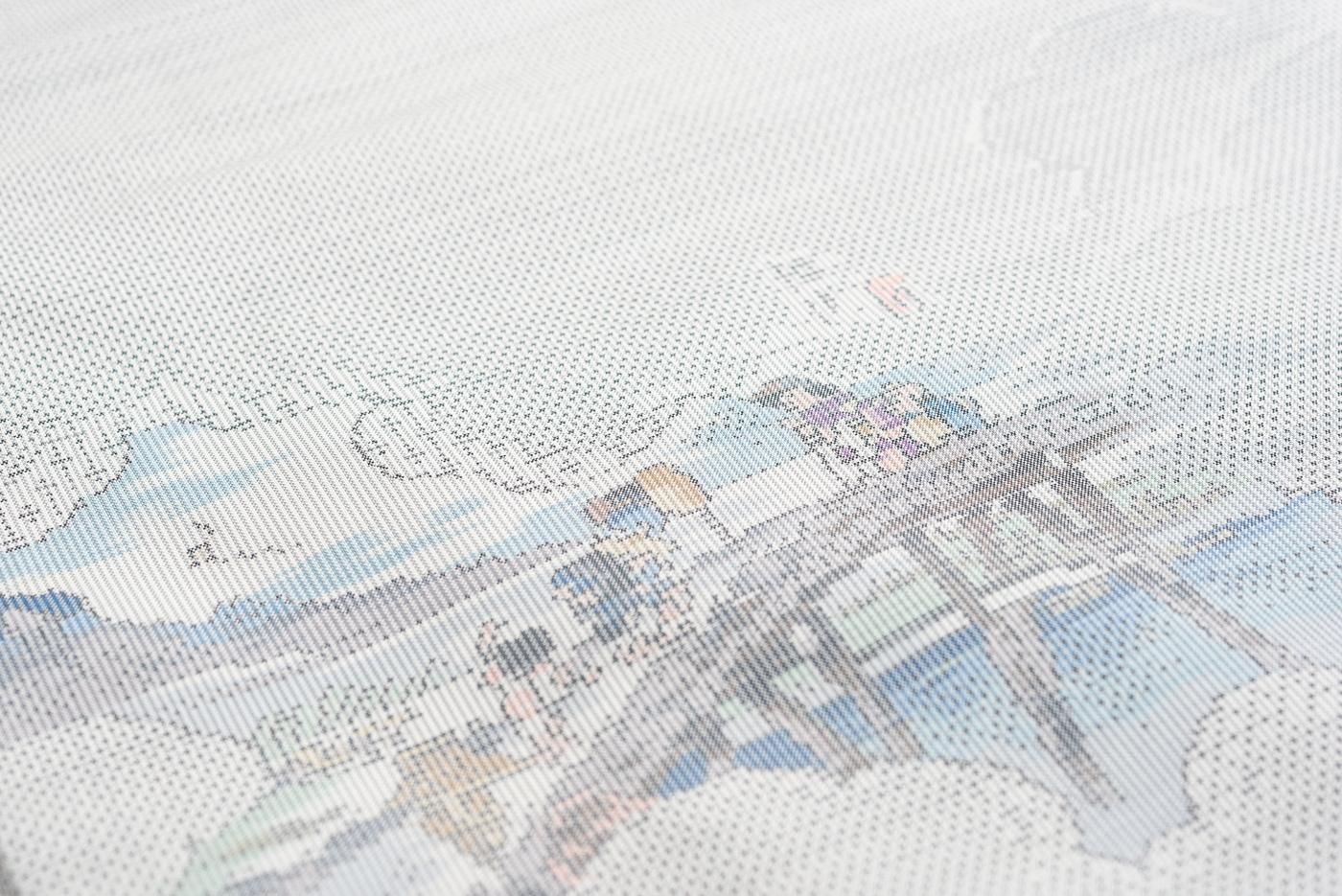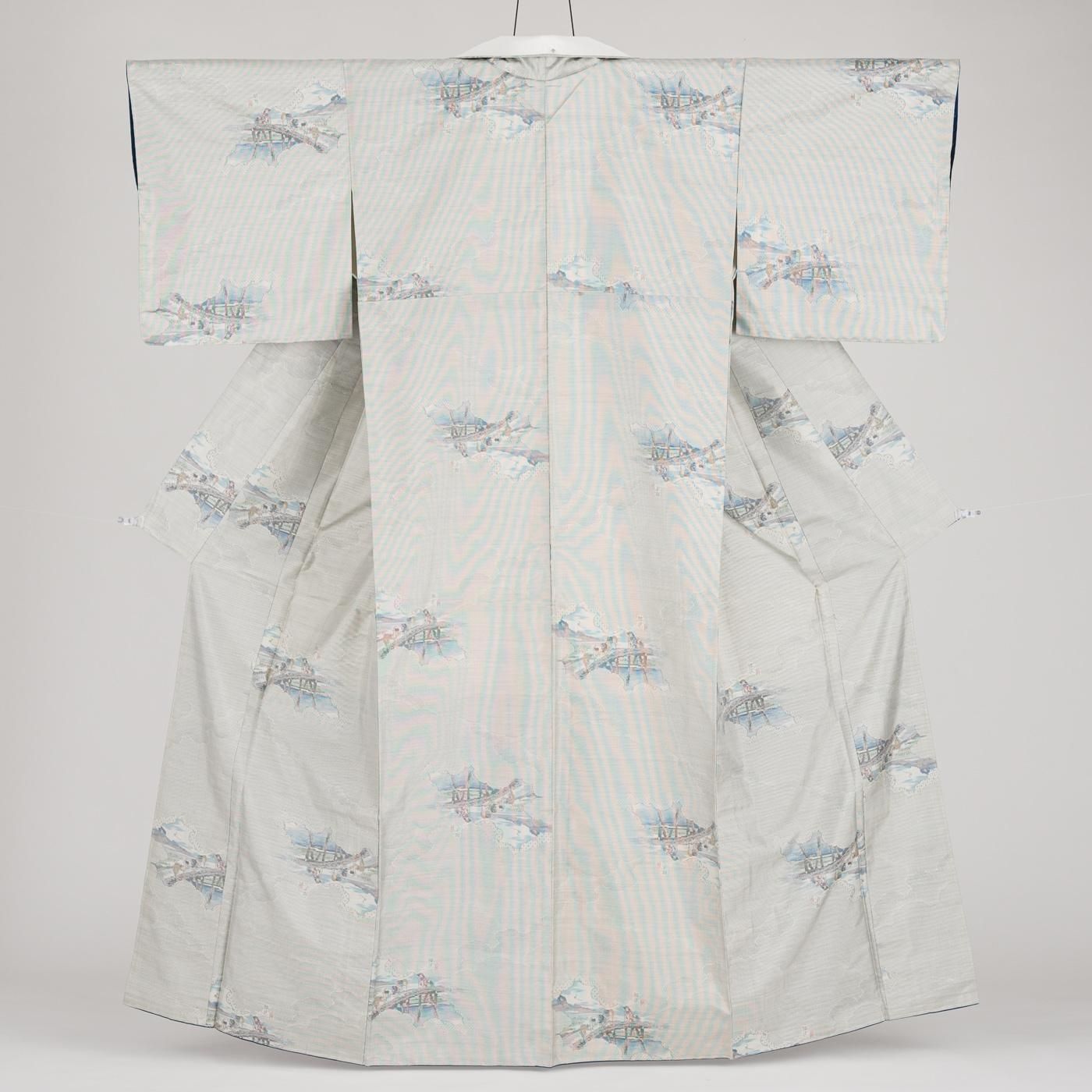 【売り切れ】 大島紬 白大島 浮世絵 ゆったりサイズ