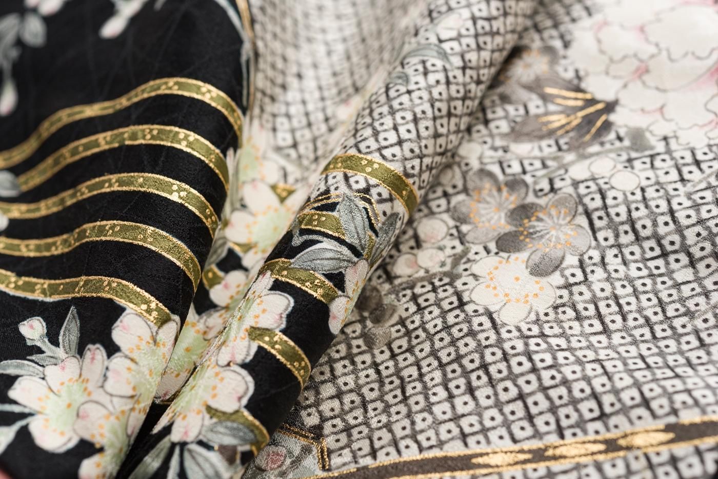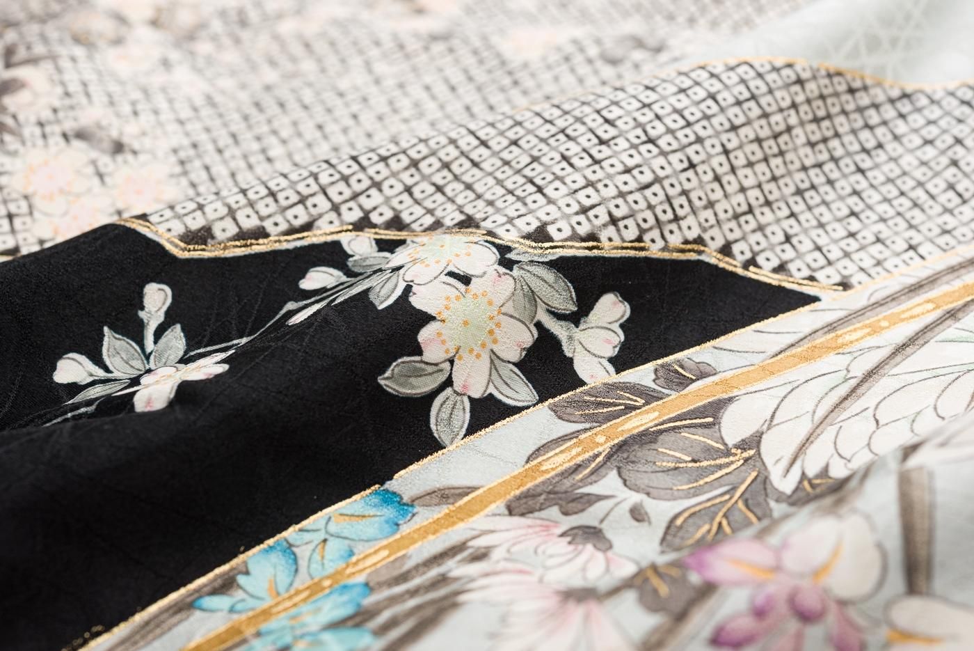 モノトーンの鹿の子に牡丹 梅 菊など