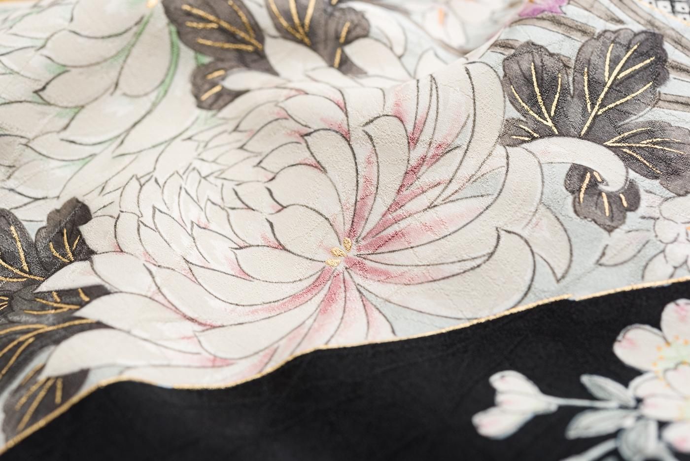 【売り切れ】 モノトーンの鹿の子に牡丹 梅 菊など