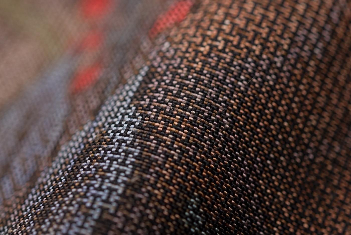 シックな地色に花と紅白がぱっと映える渋さと可愛さが共存するデザインです。