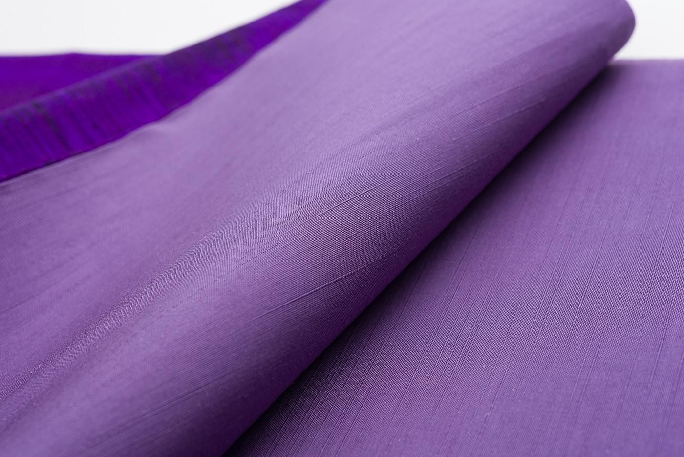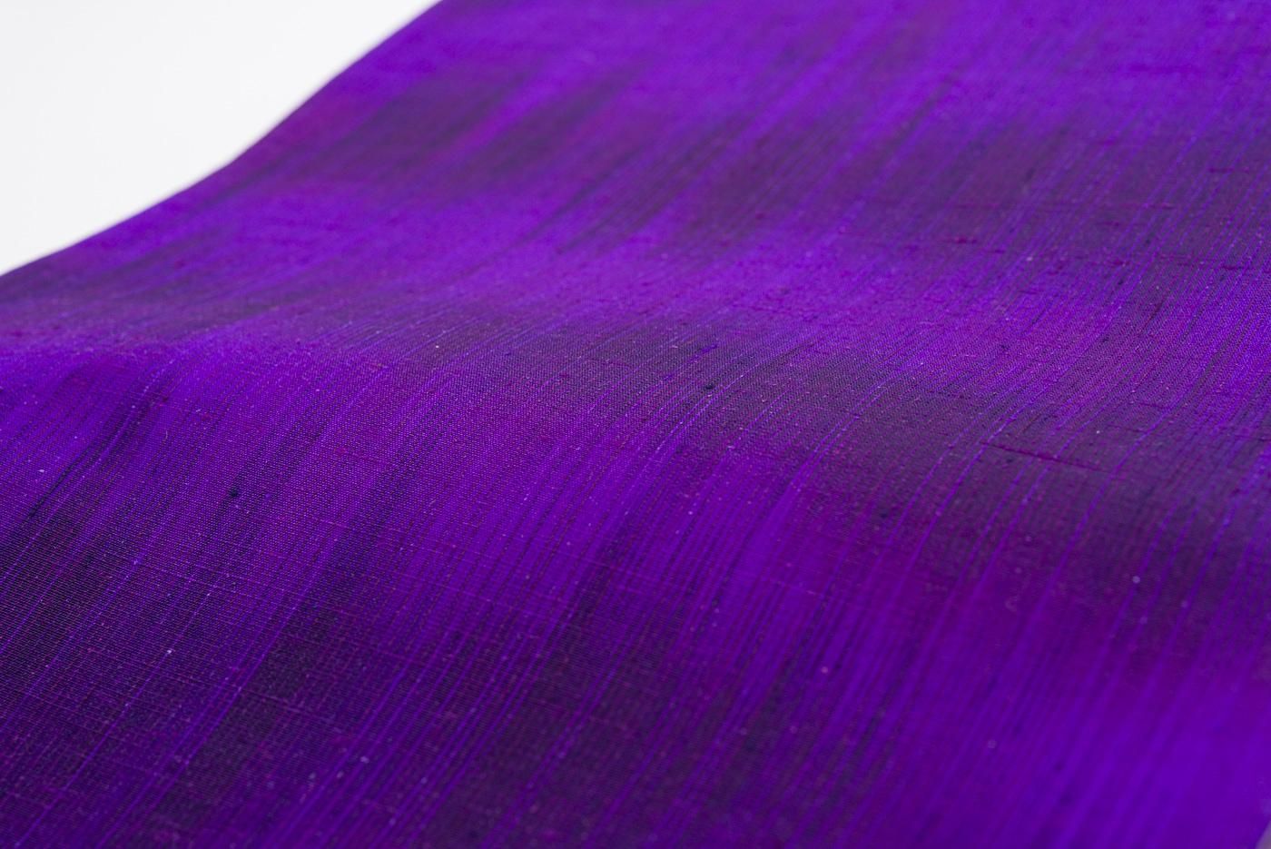 鮮やかな紫にノイズのような抽象柄を織り出したモダンで格好良いデザイン。