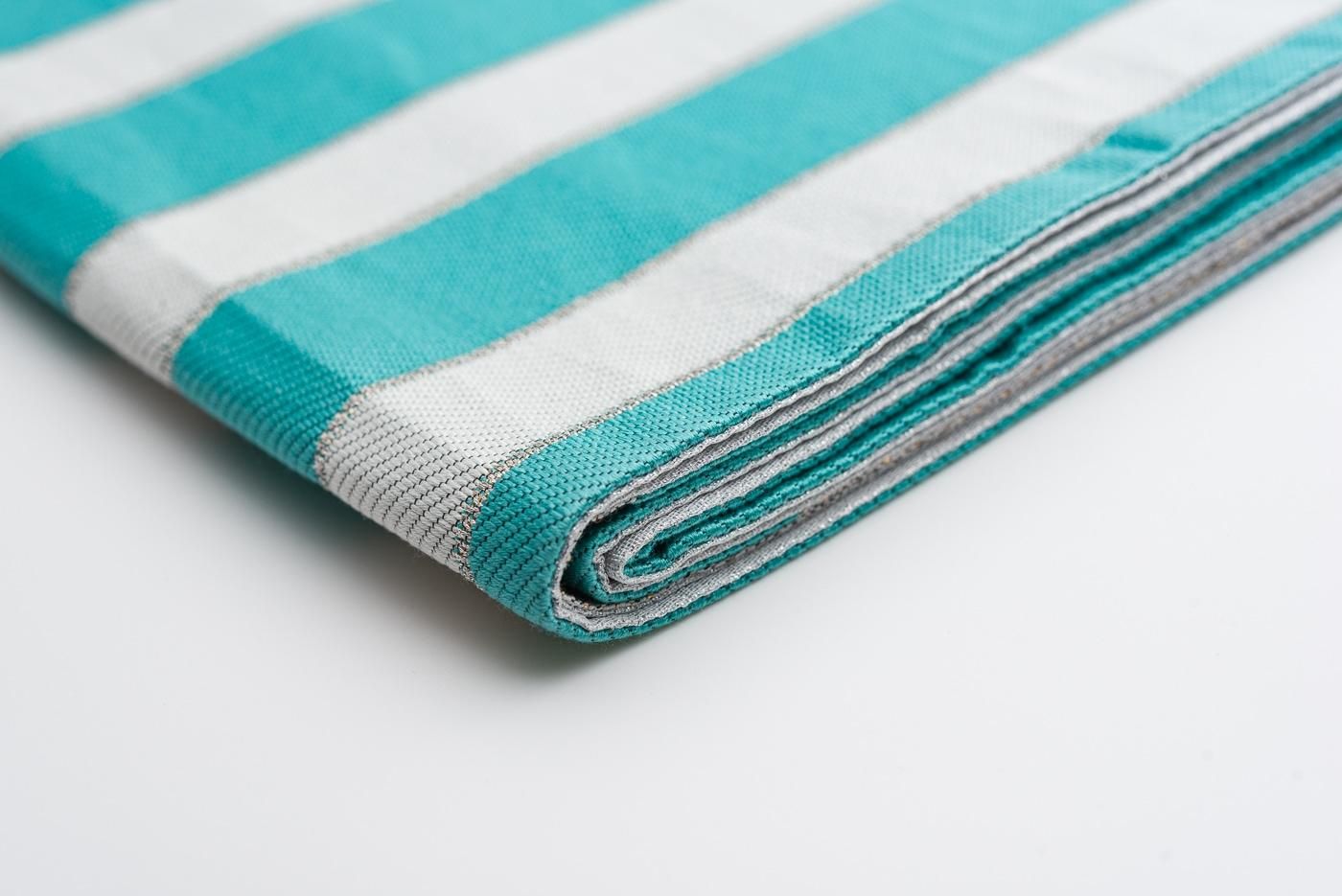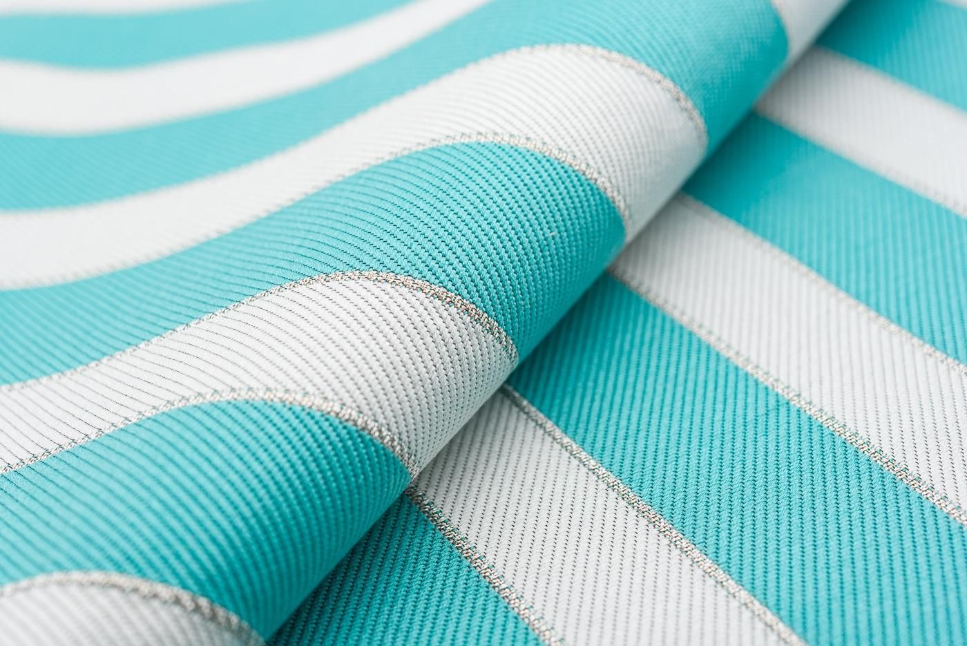 ティファニーブルーのストライプ模様がキュートな袋帯です。