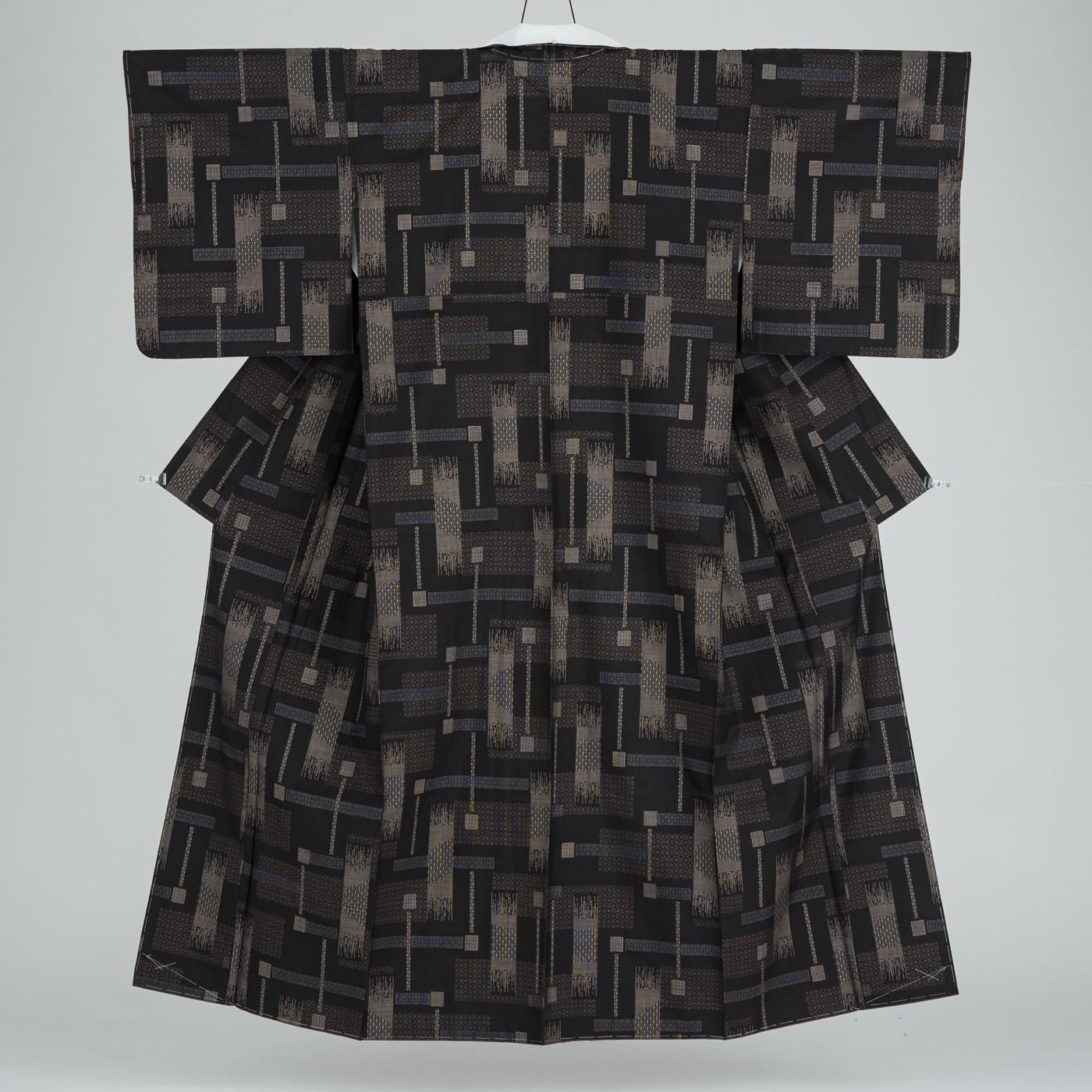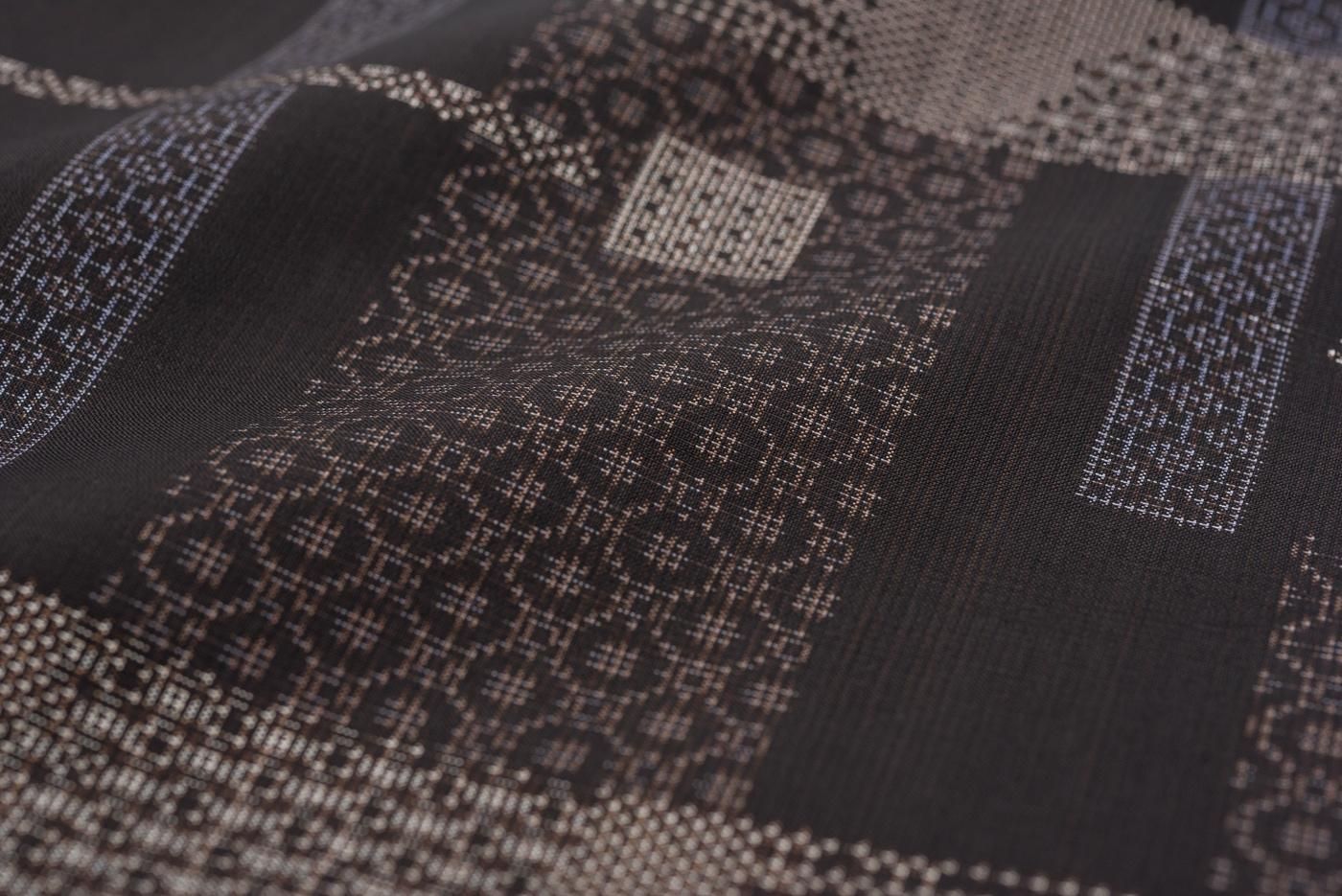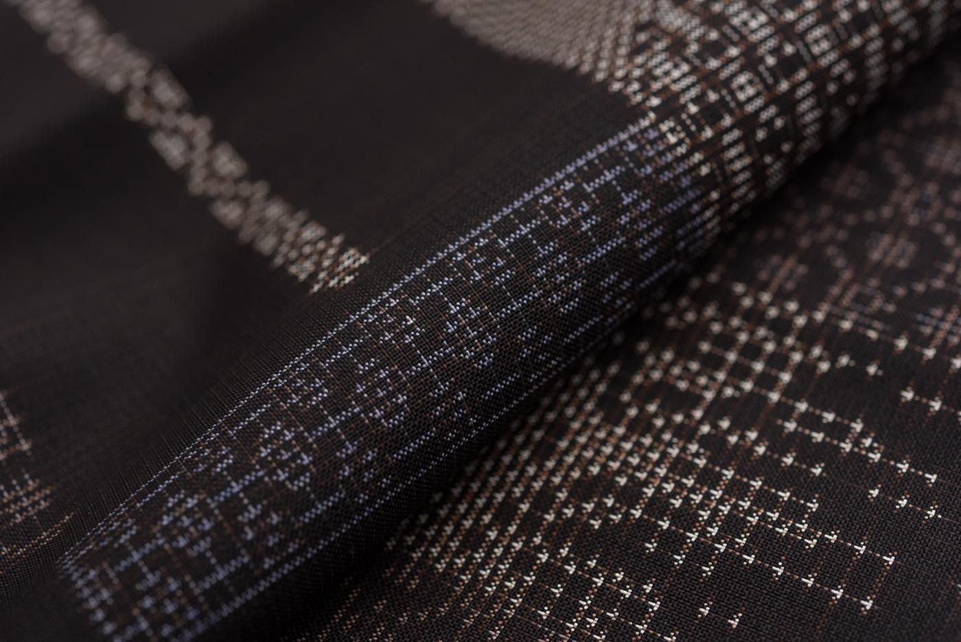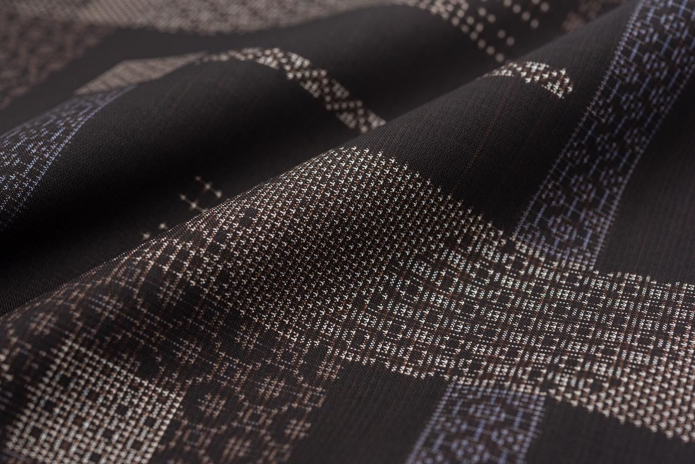 重なるラインをモダンに表現した抽象柄の大島紬です。