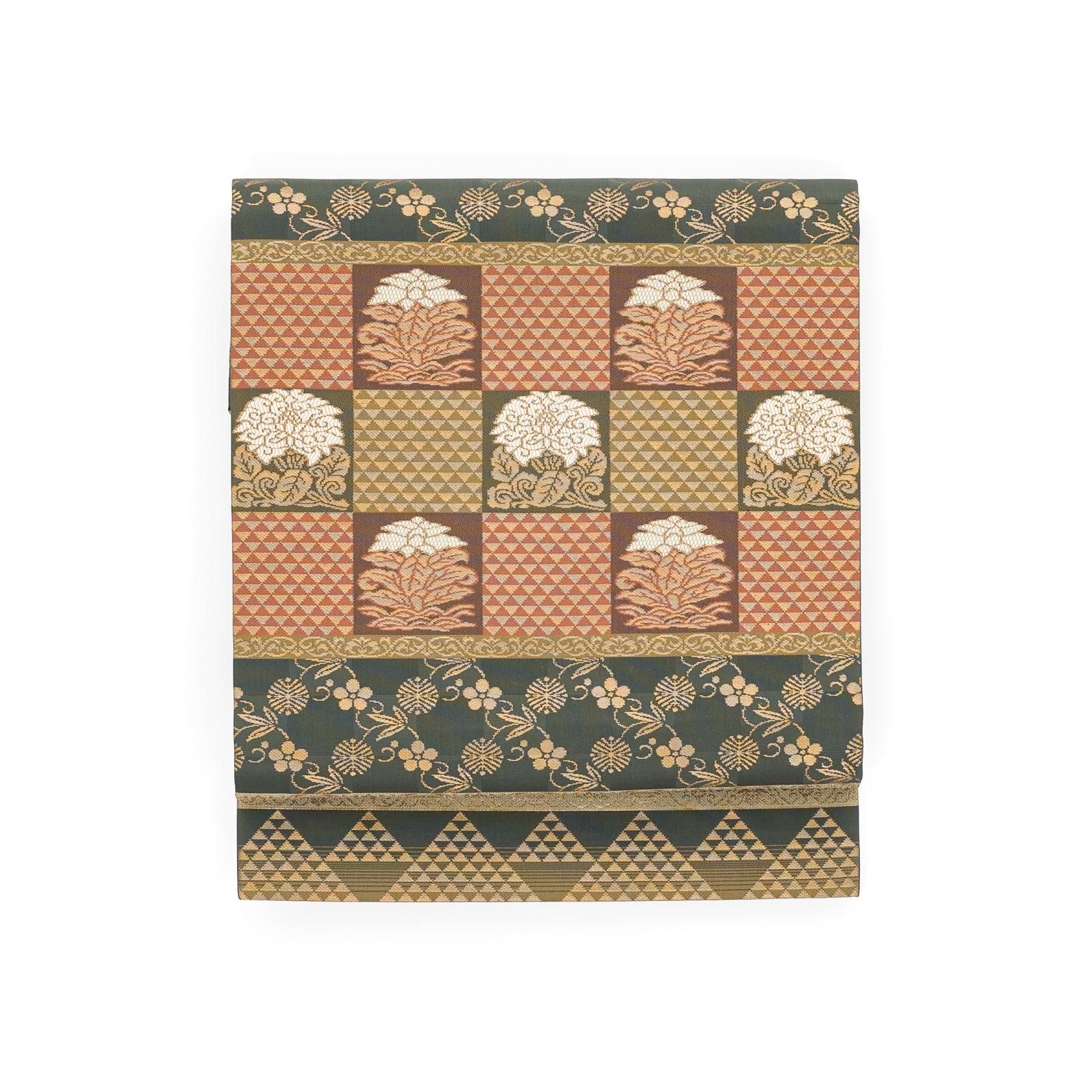 市松模様の中にはたっぷりとボリュームのある鶏頭の花。
