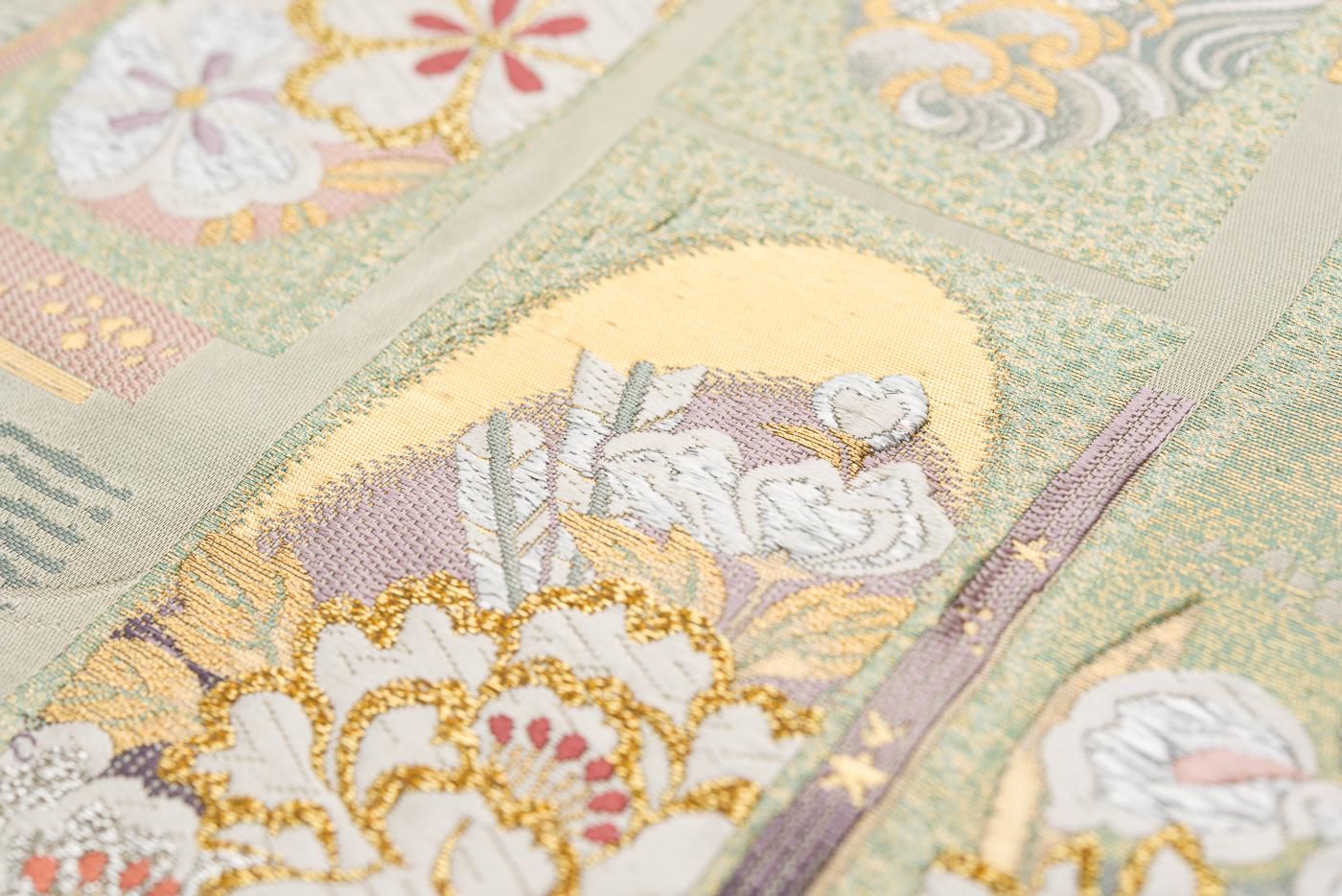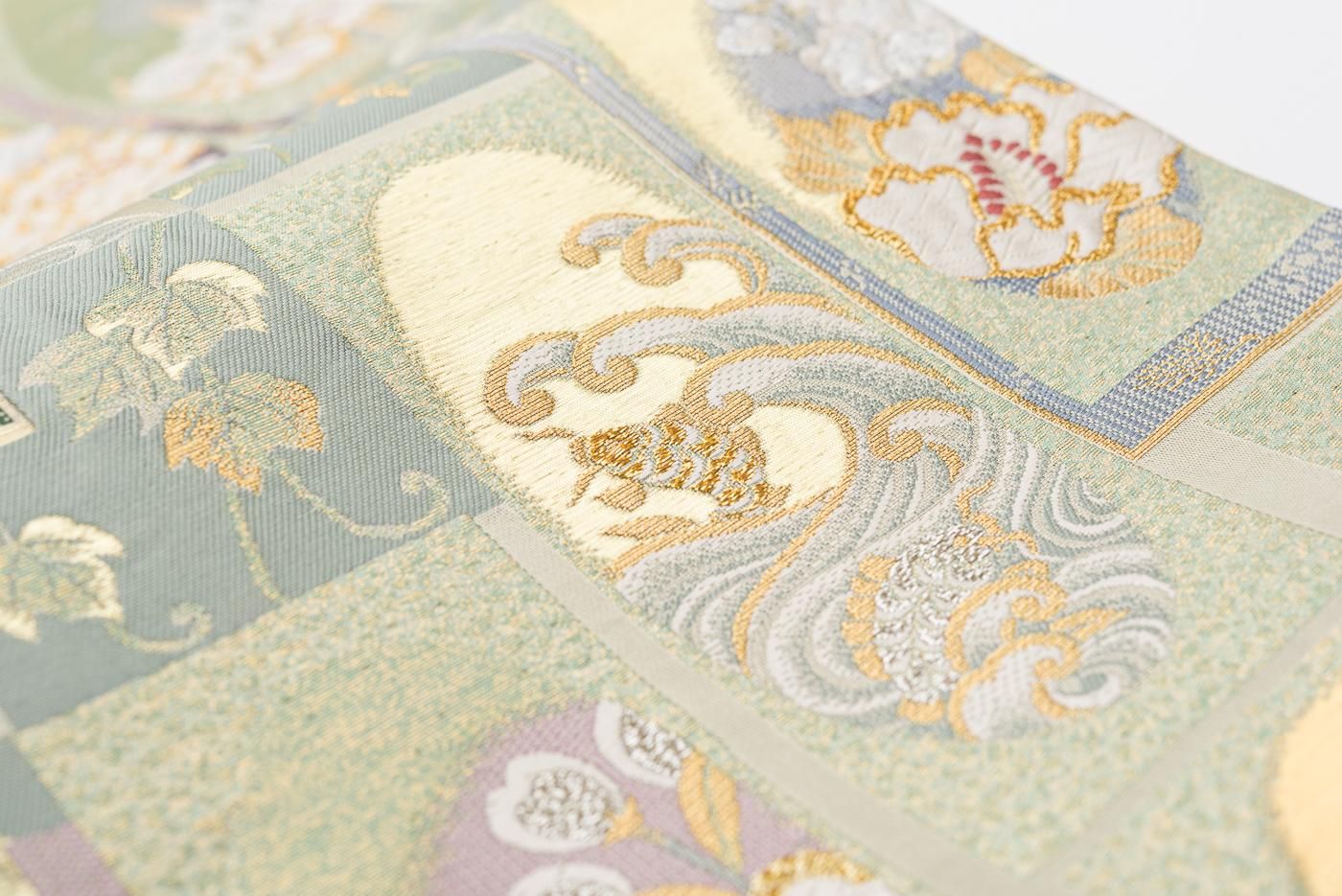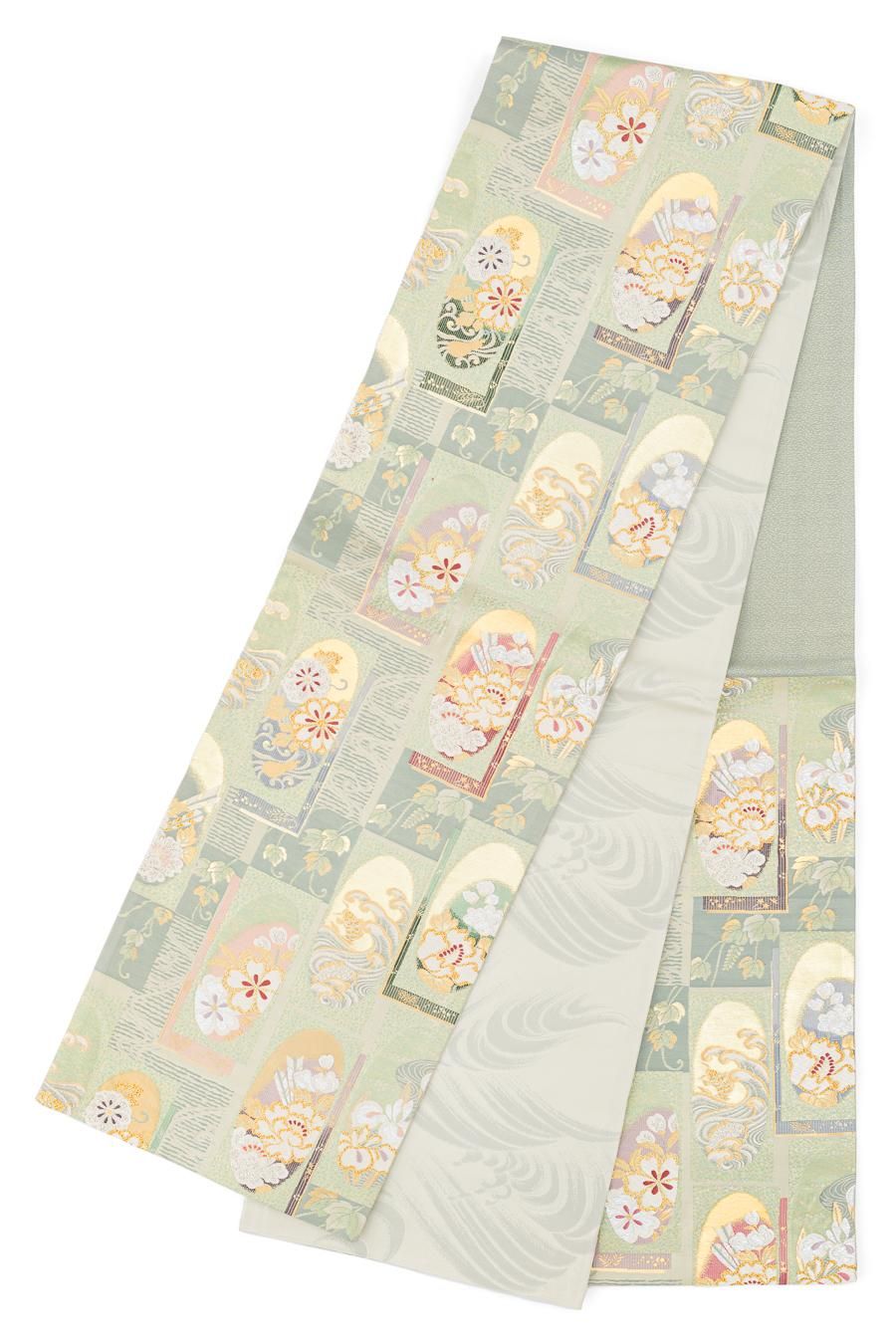 【売り切れ】 袋帯●リバーシブル 花短冊 荒磯