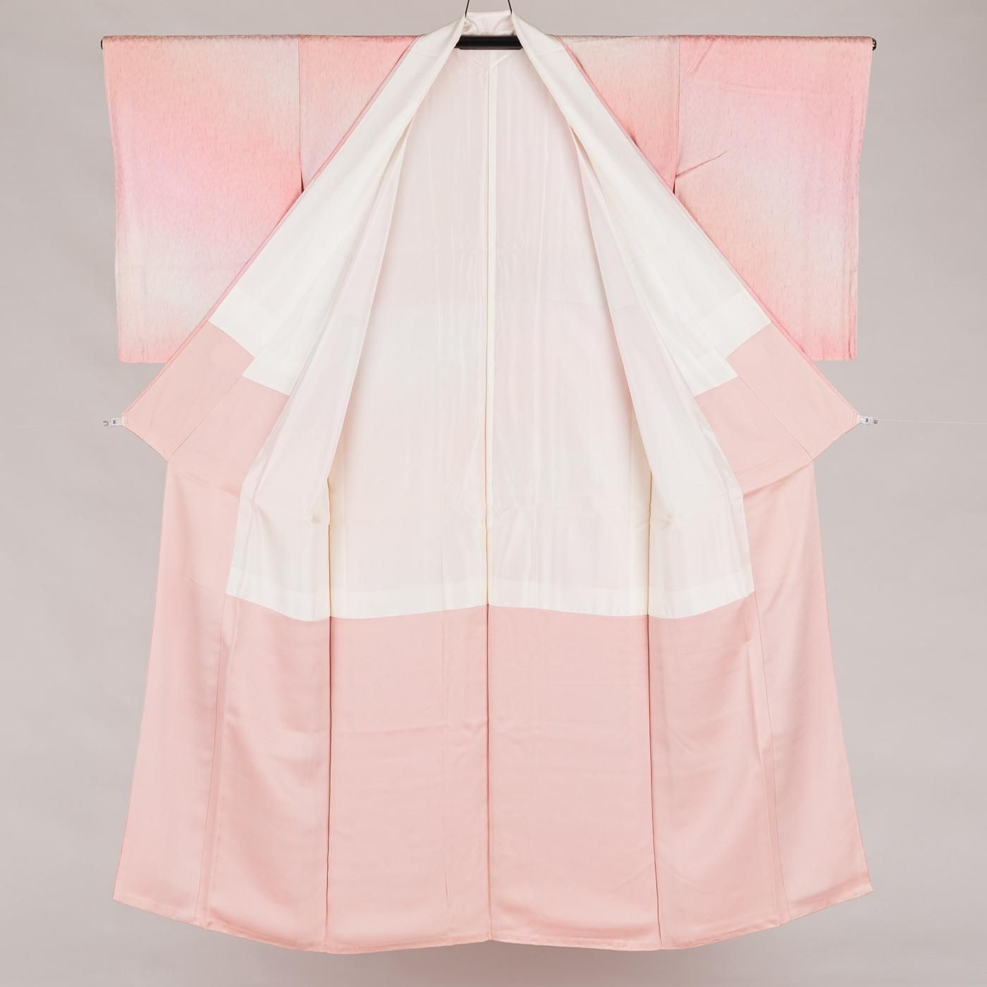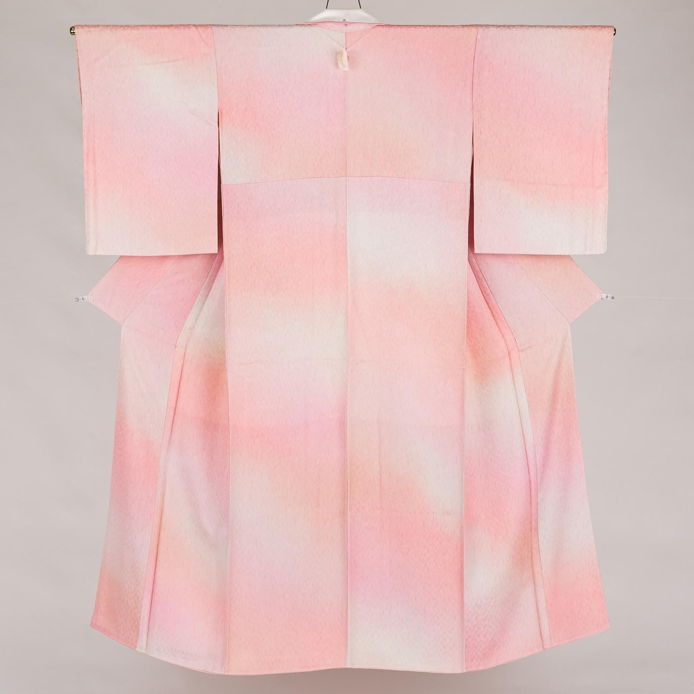 ピンクや白の暈し染めがはんなり愛らしい色無地です。