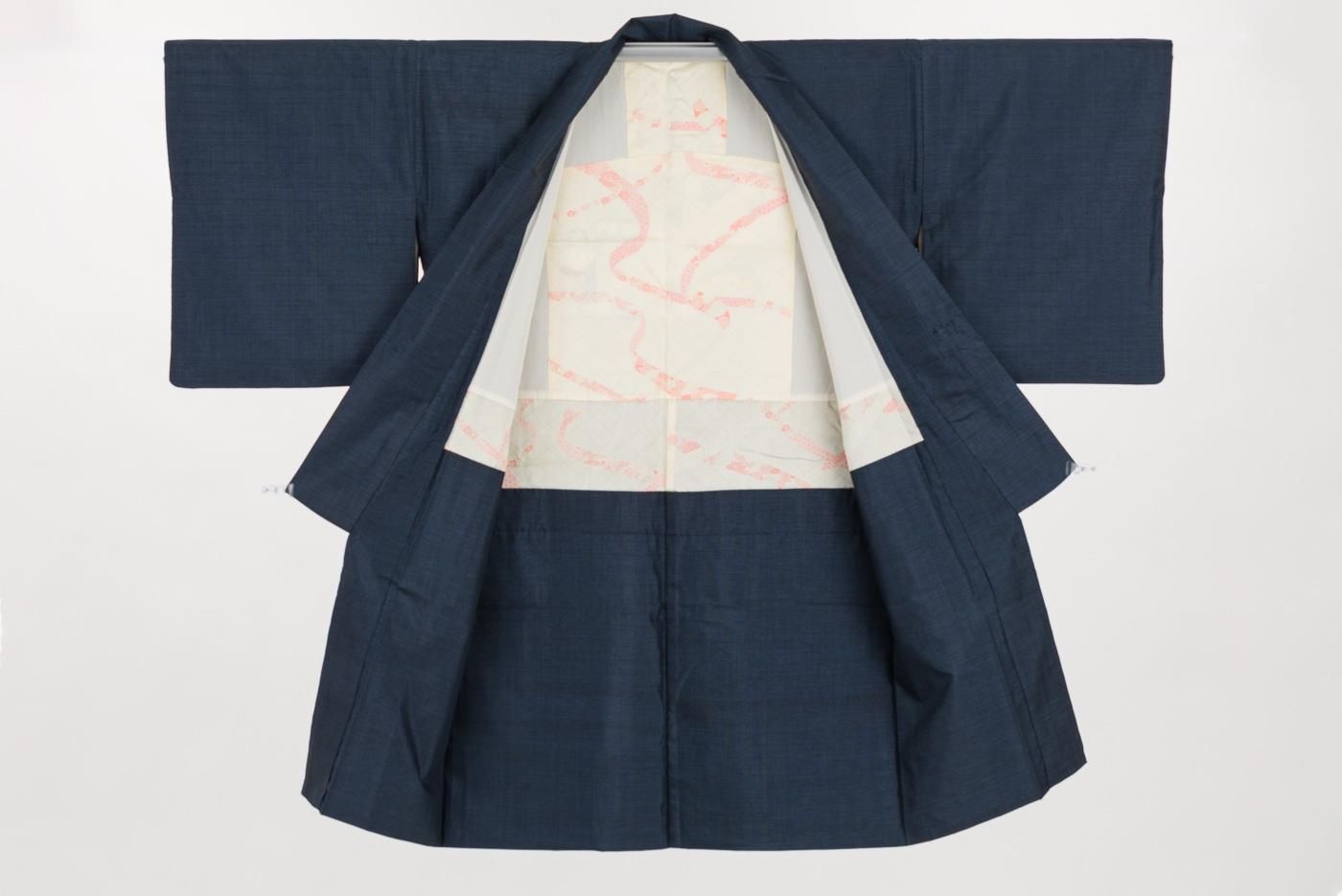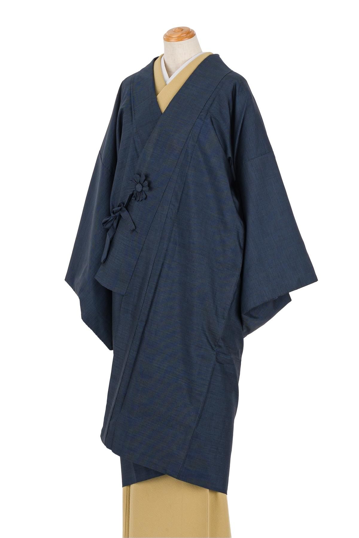 紺無地にも見えるシンプルな道中着ですので色々な着物と相性良くお使いいただけるかと思います。