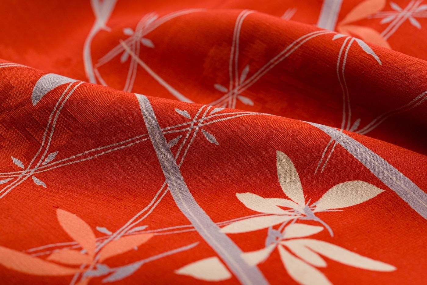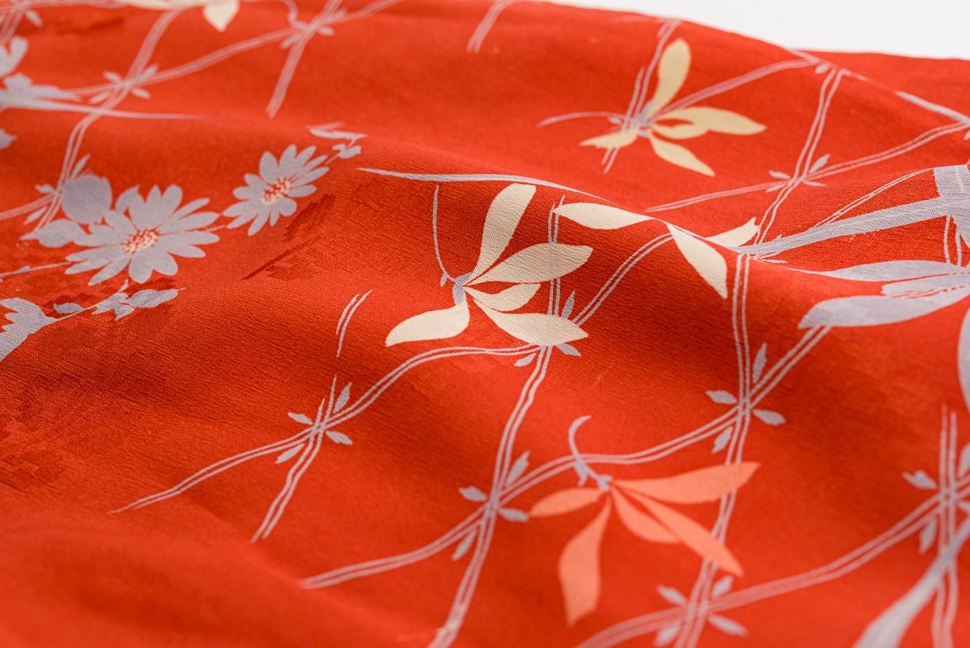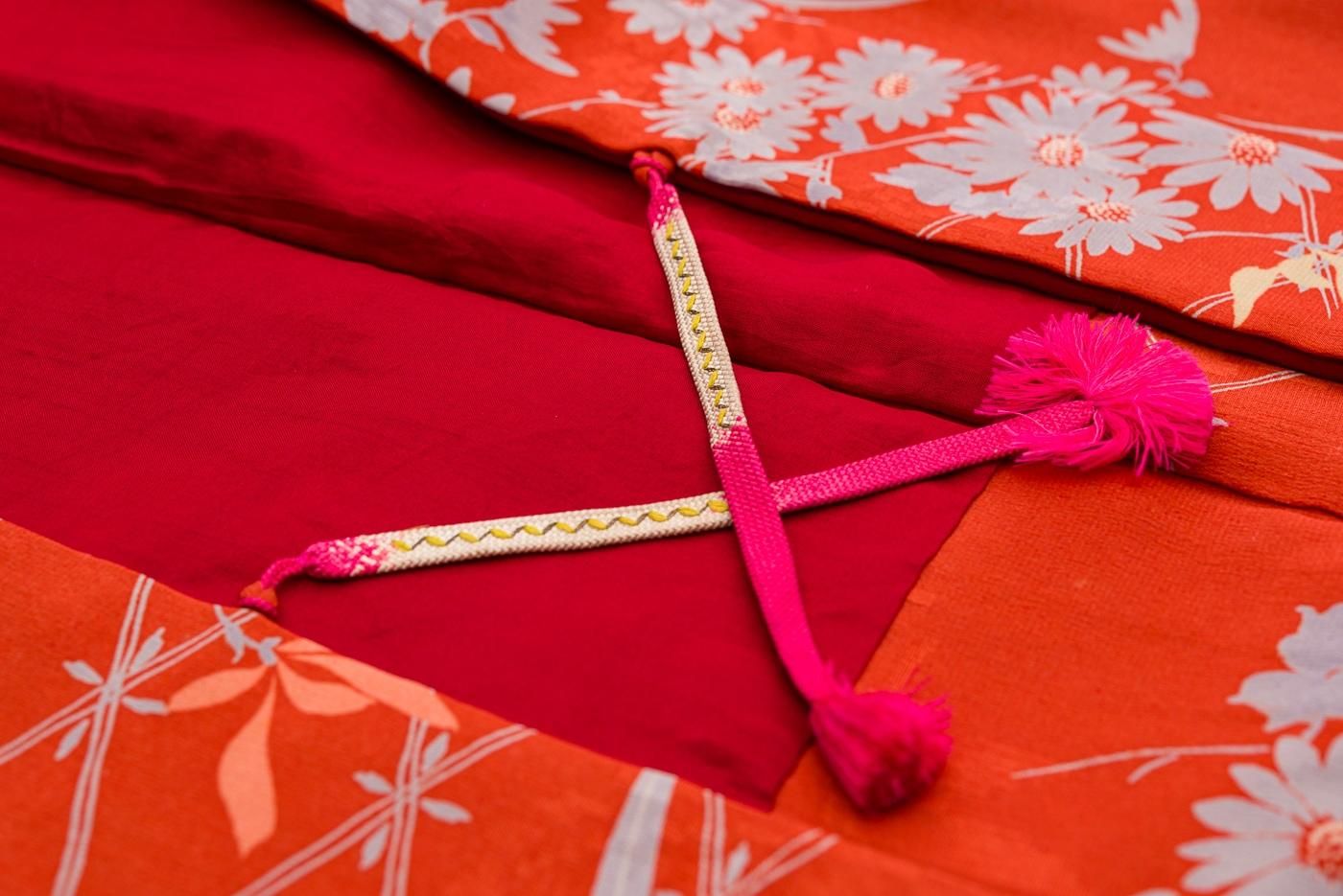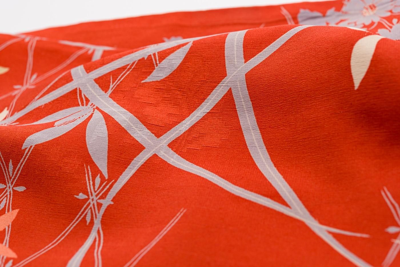 朱色の地に蘭と菊を染めたアンティークの長羽織です。