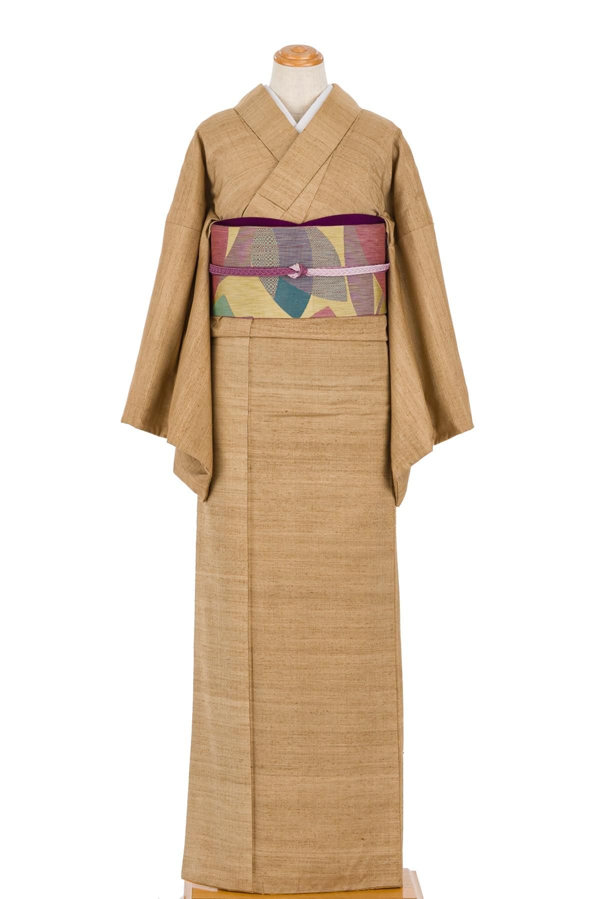 無地紬 一つ紋 枇杷茶の商品写真