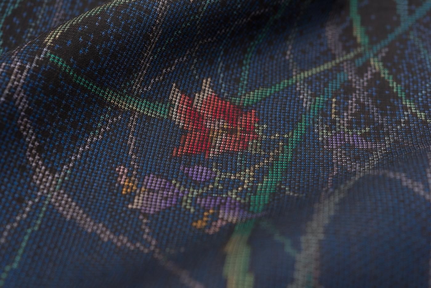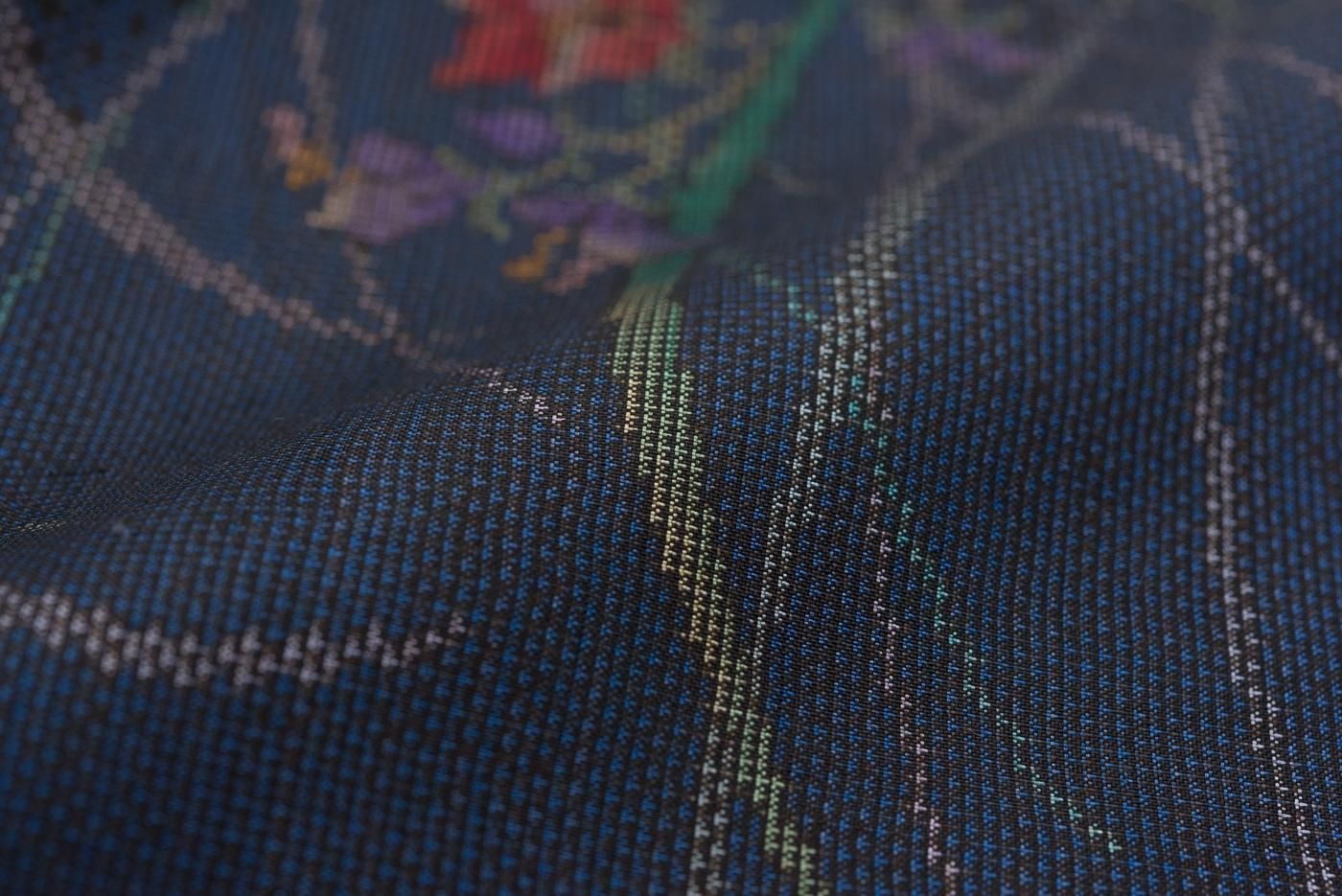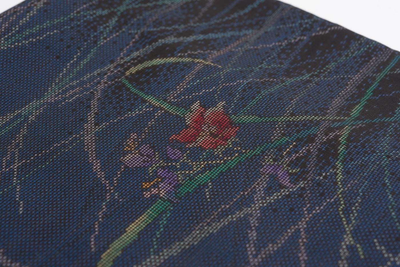 大島紬 紺地 草花模様