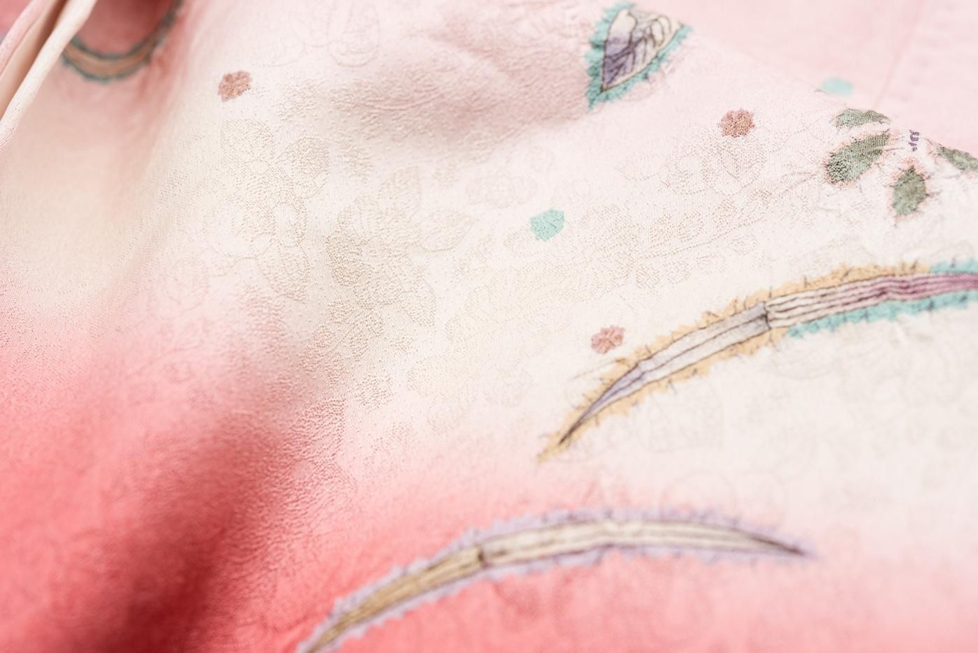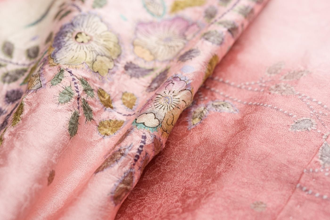 ピンク色の地に辻が花模様を染めた訪問着です。