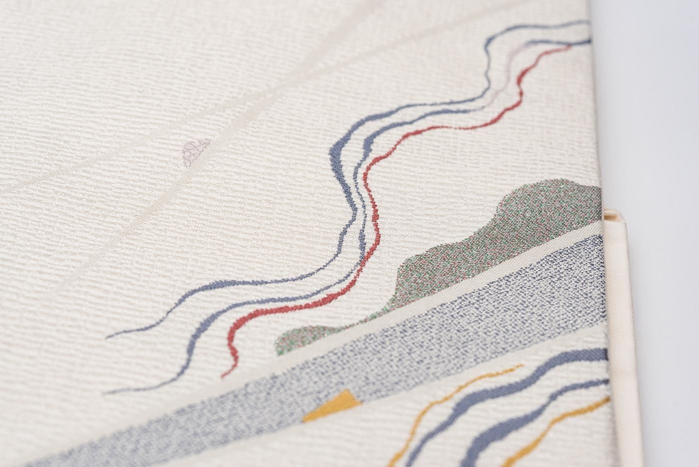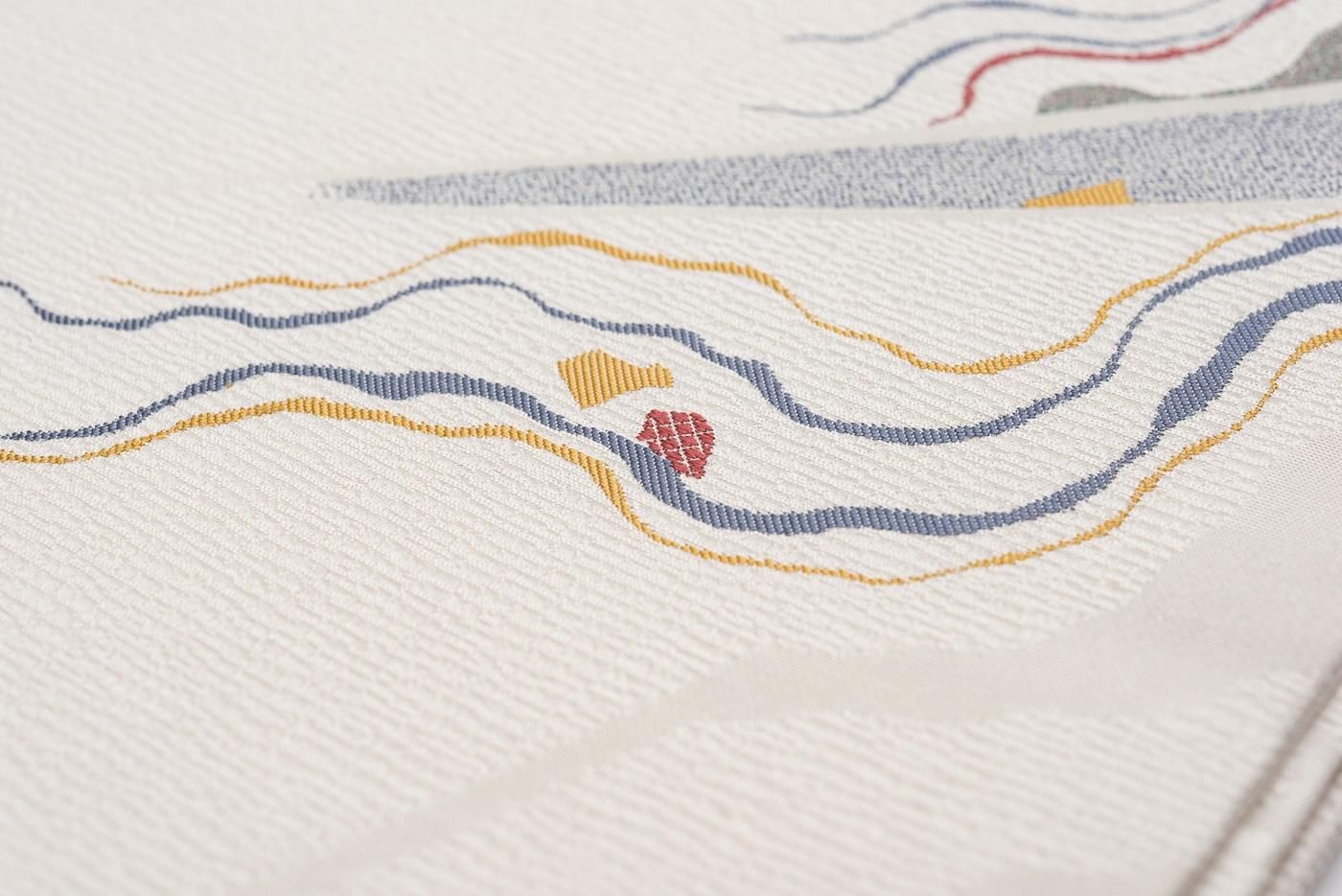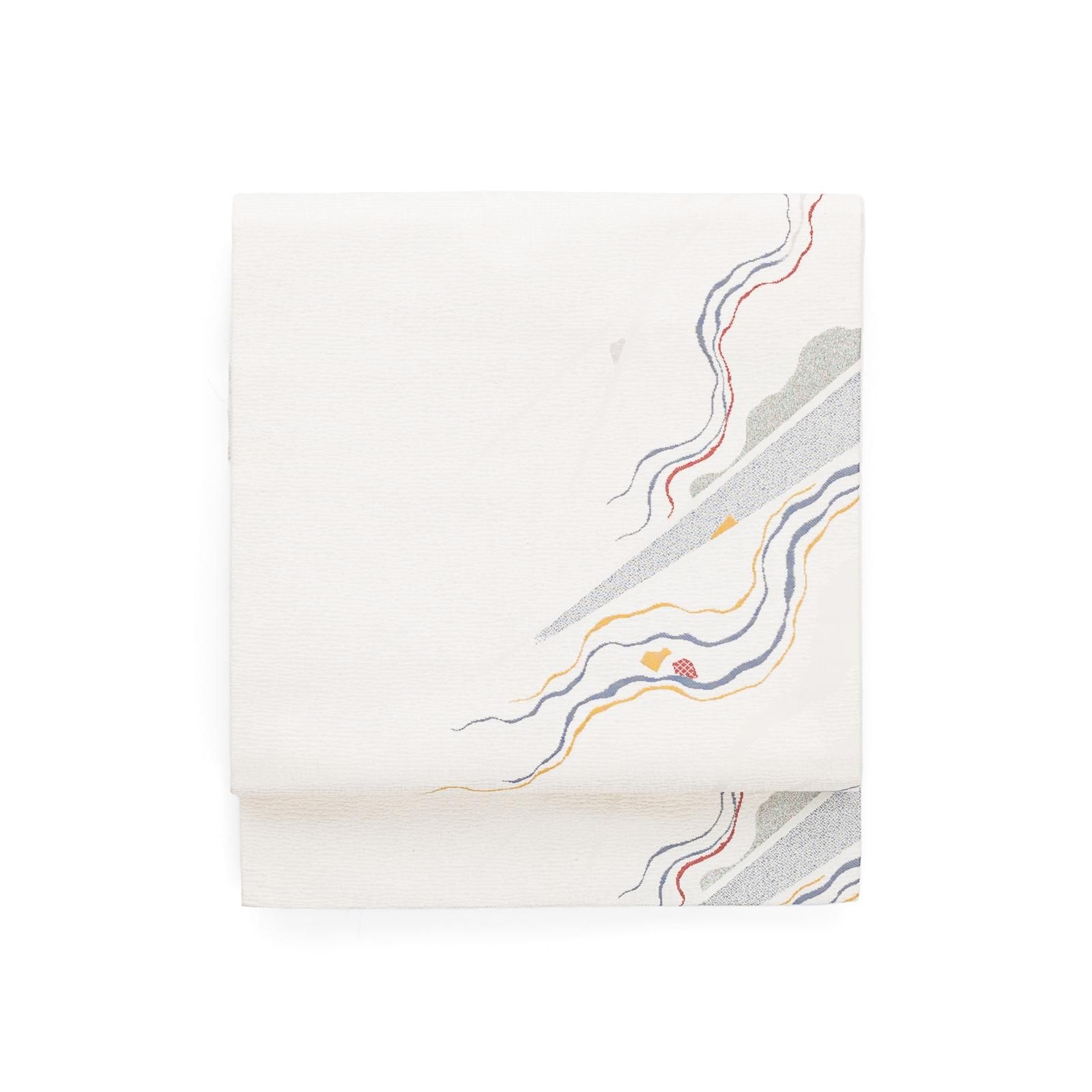 すっきりモダンな流線柄が印象的な九寸名古屋帯です。