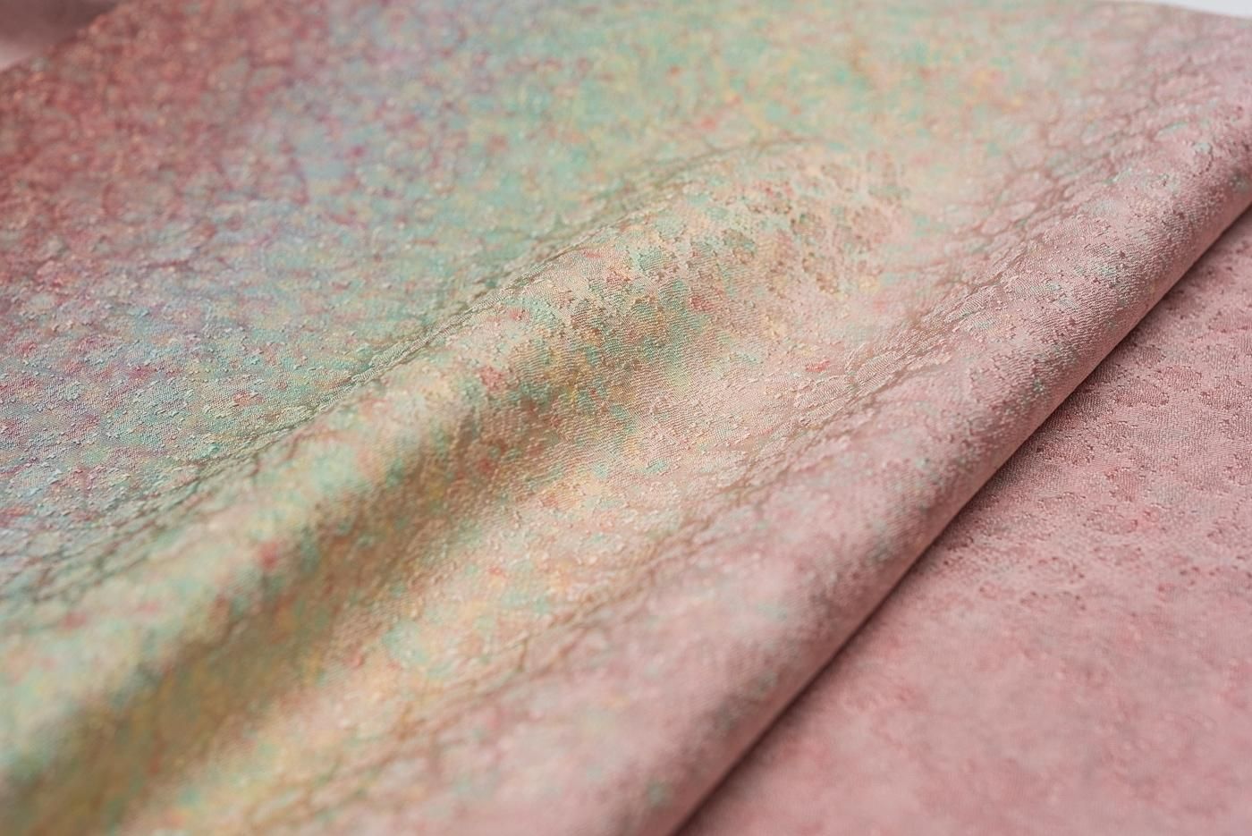 光が当たると桜の地紋がふんわりと浮かび上がって大変美しい雰囲気です。