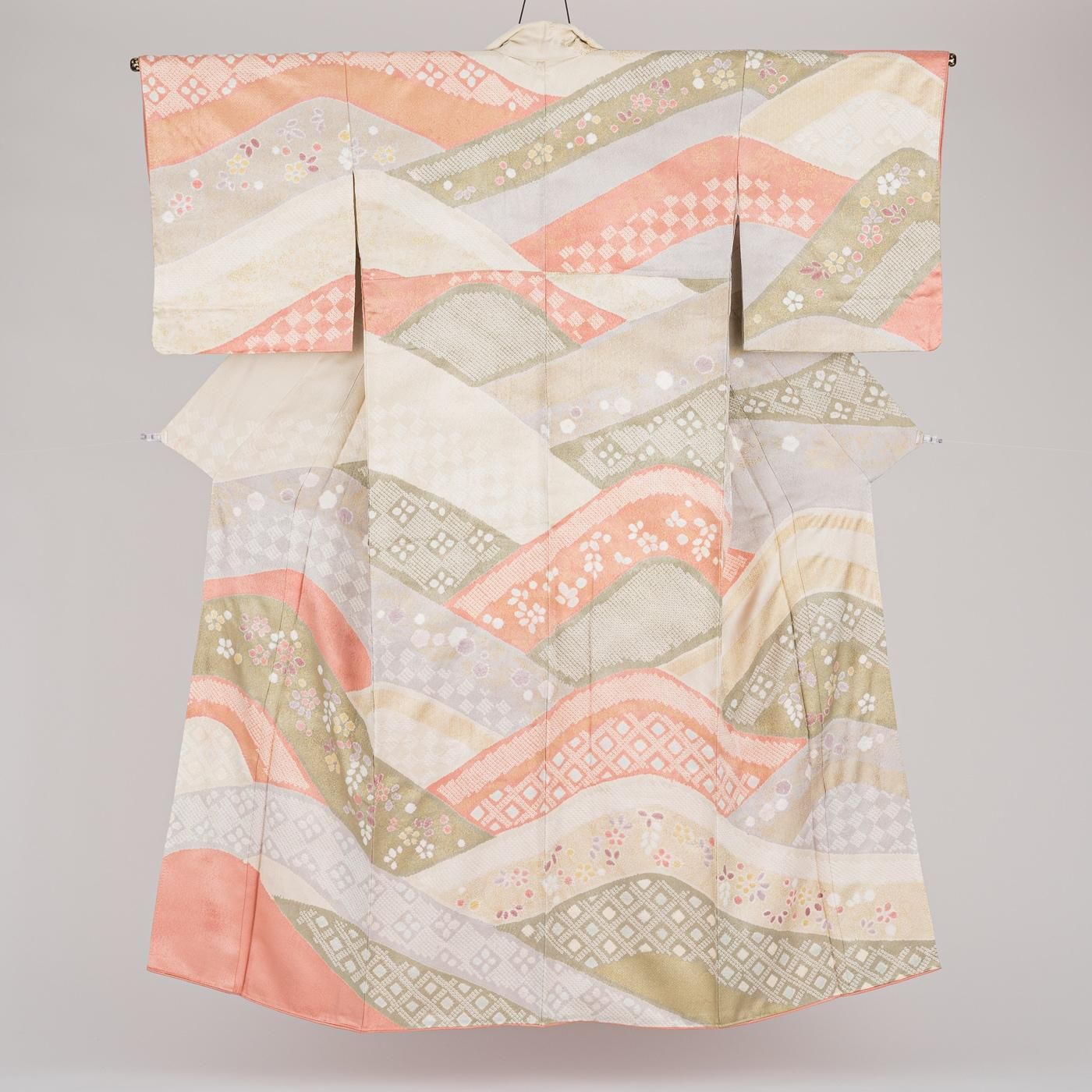 着物全体が1枚の絵のように見える華やかでボリュームのあるデザインですね。