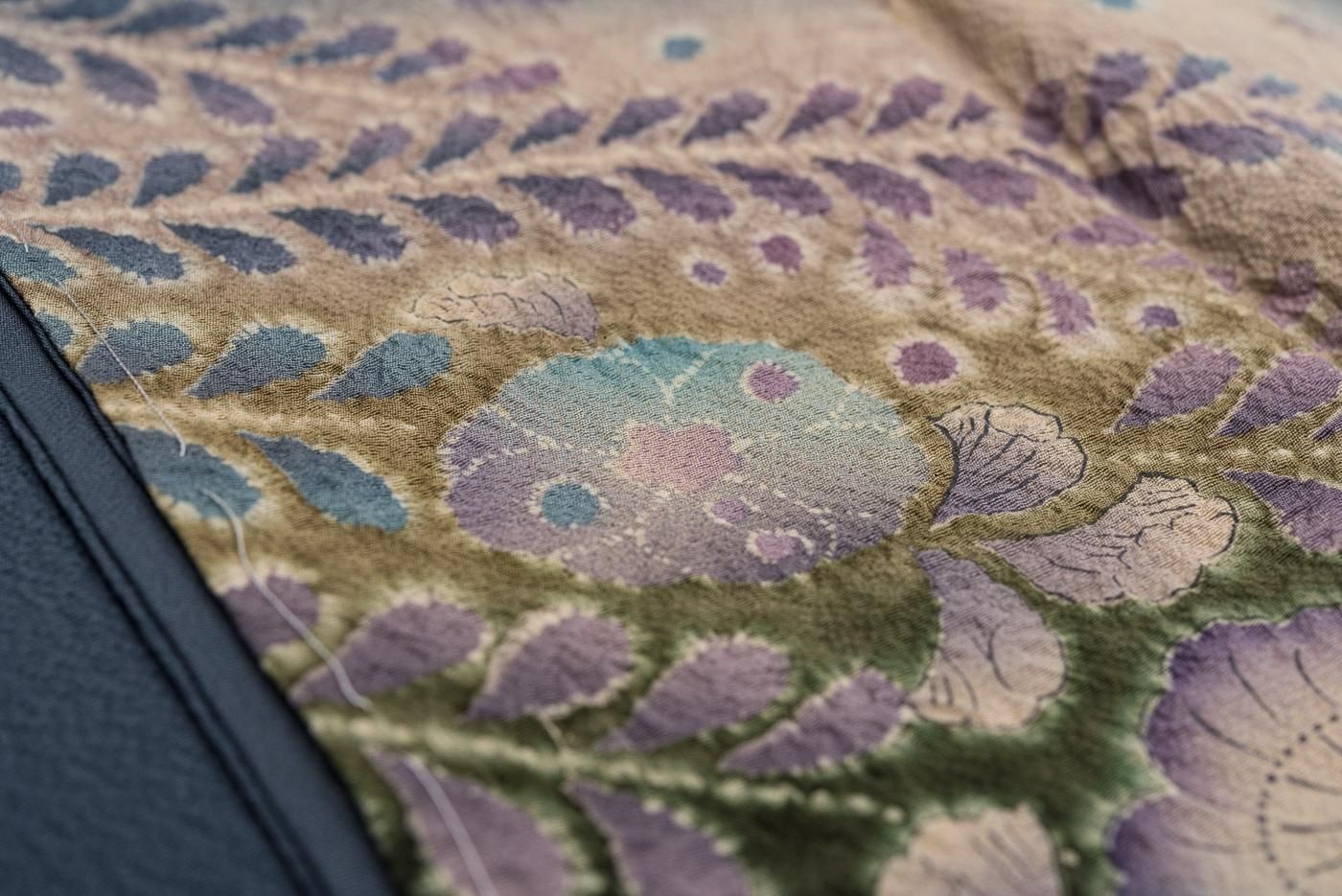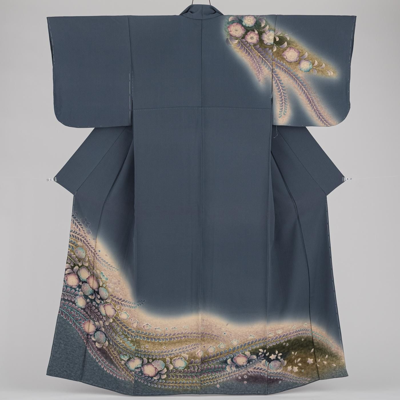 訪問着 藍鉄色 辻が花模様