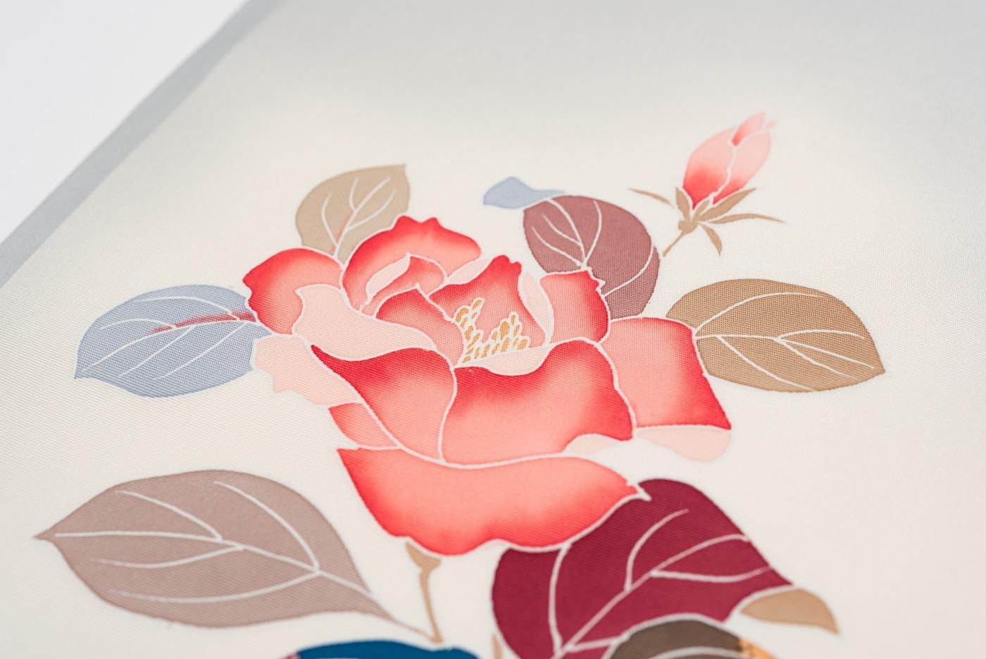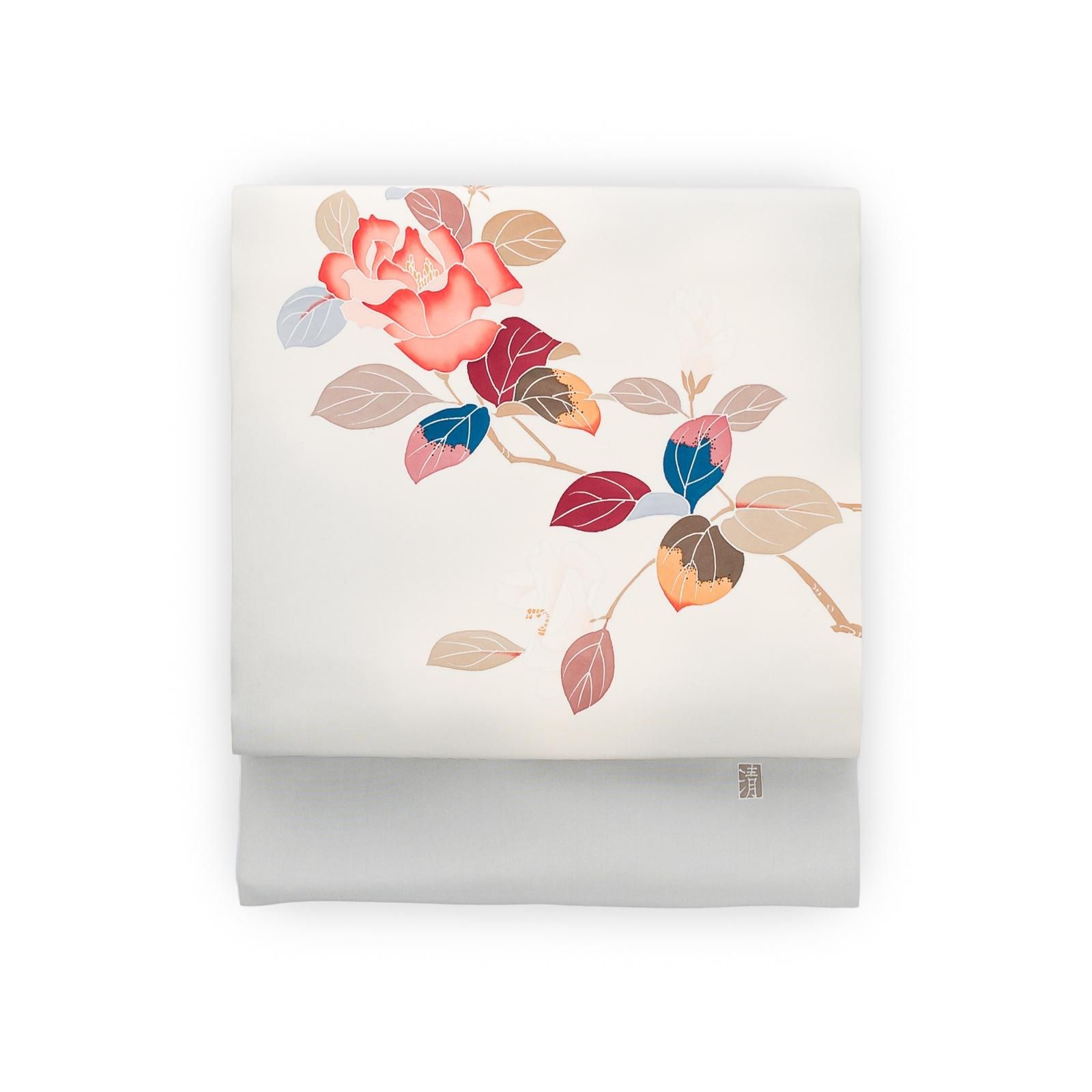 前帯には両面それぞれ赤と白の花が描かれておりますので、着物に合わせて使い分けが出来そうです。