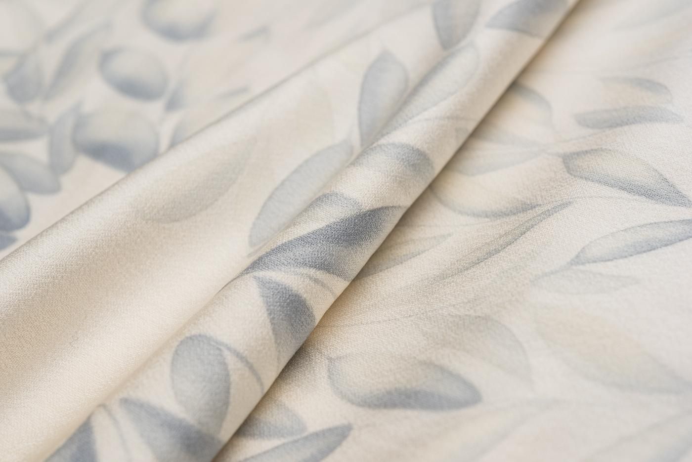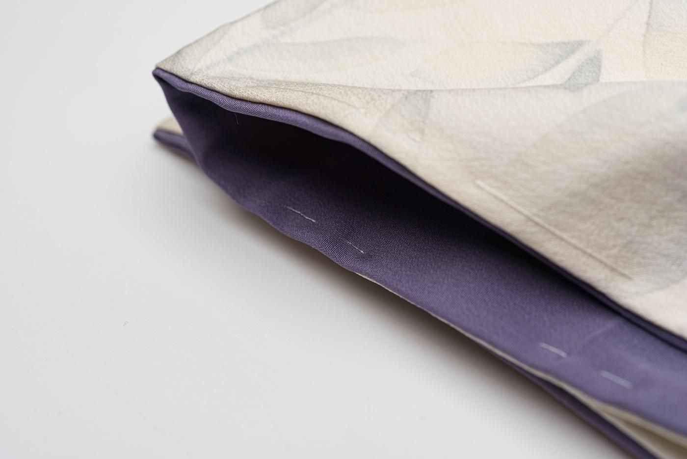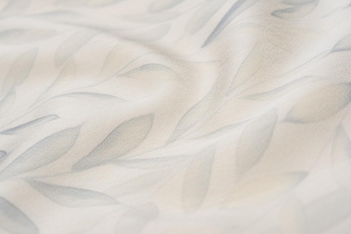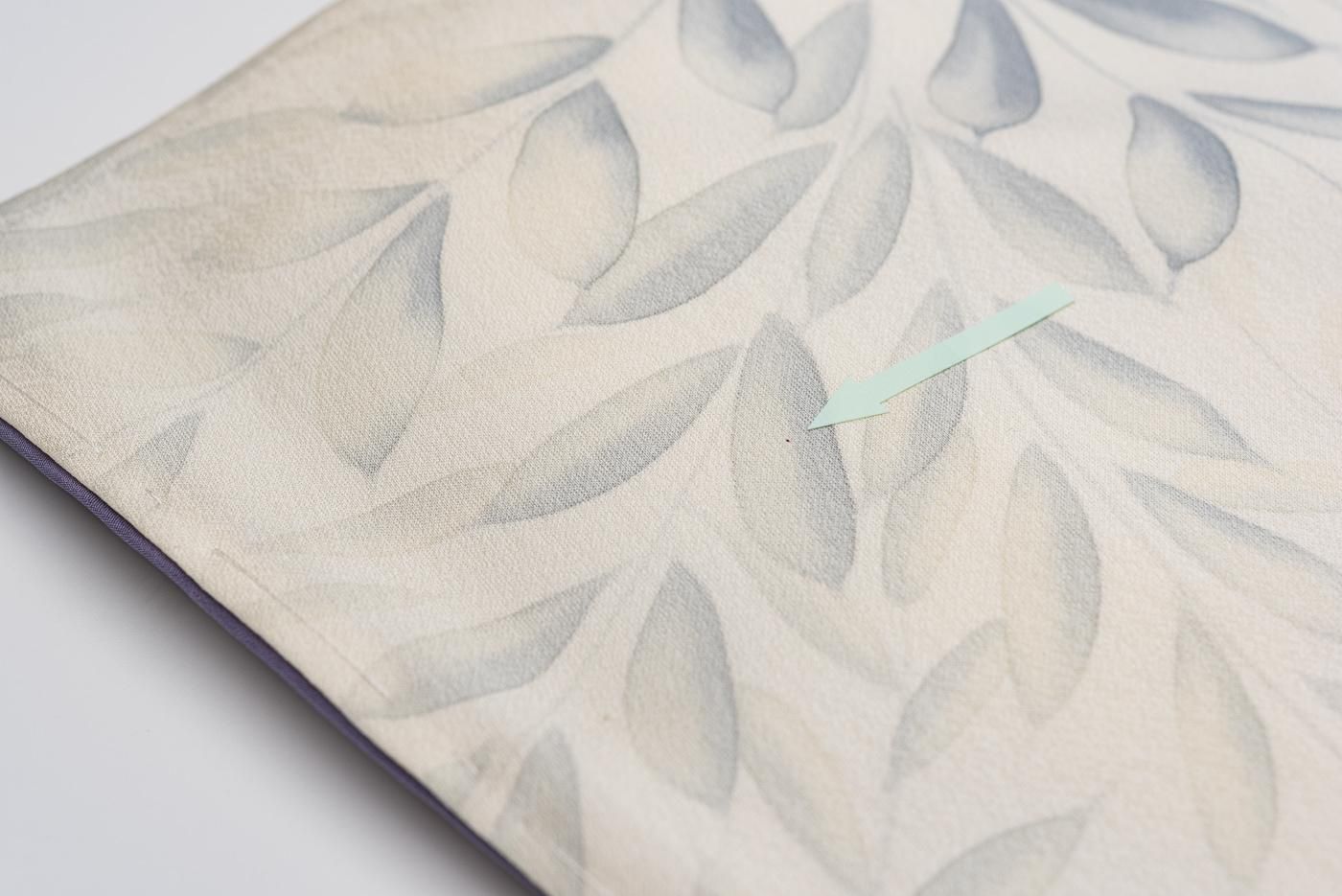 パールホワイトの地にグレーの葉を染めた小紋の着物です。