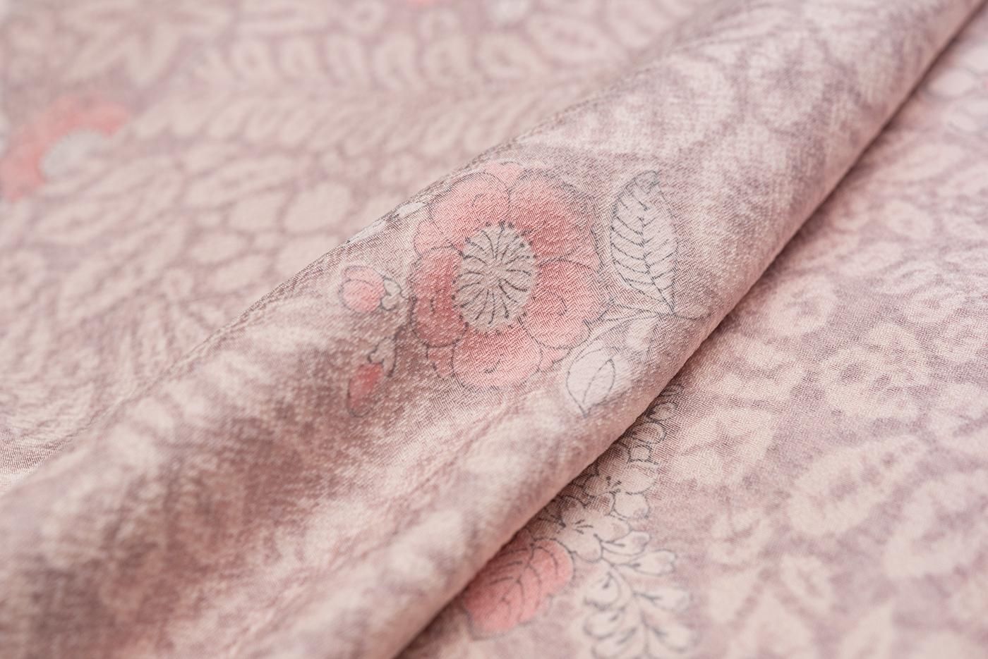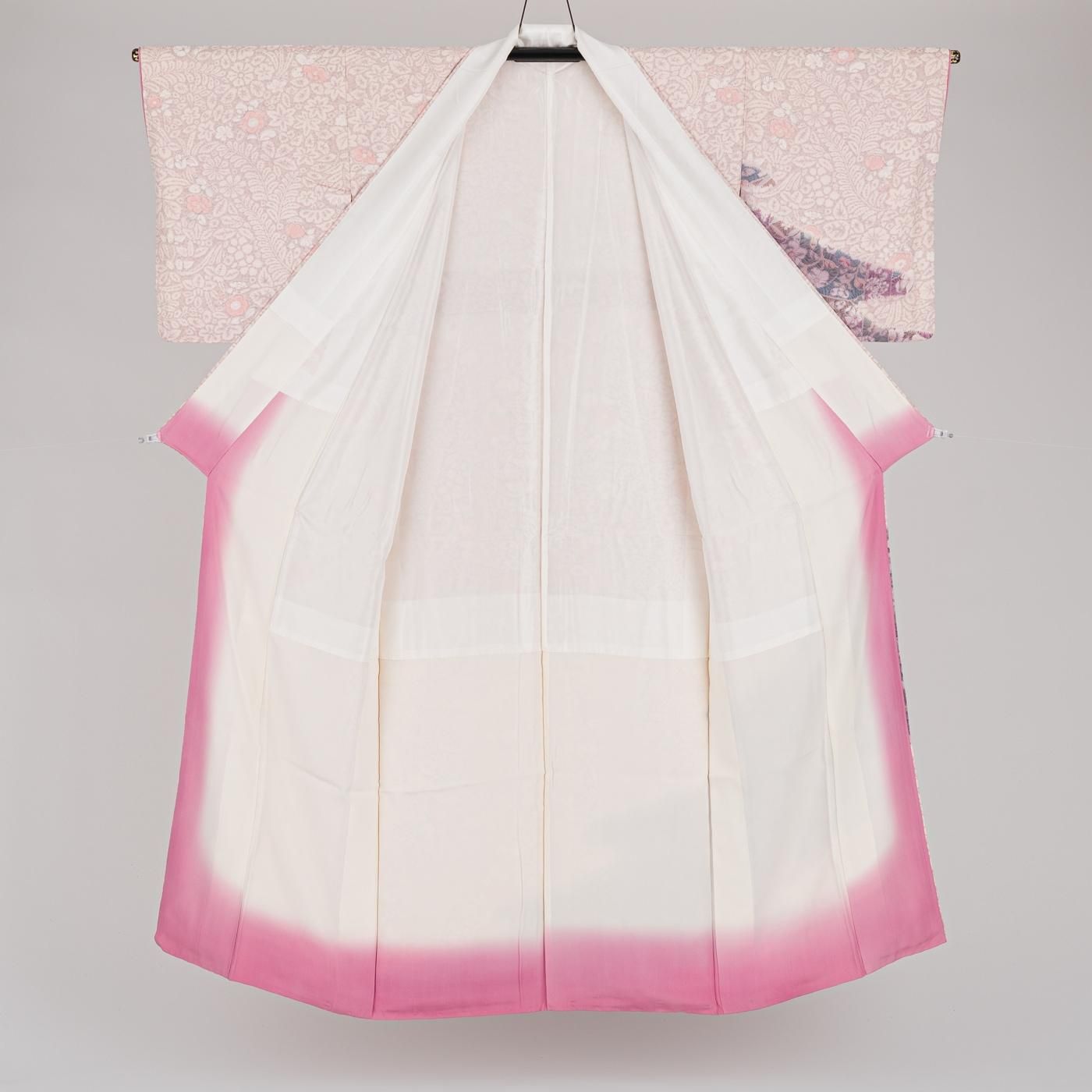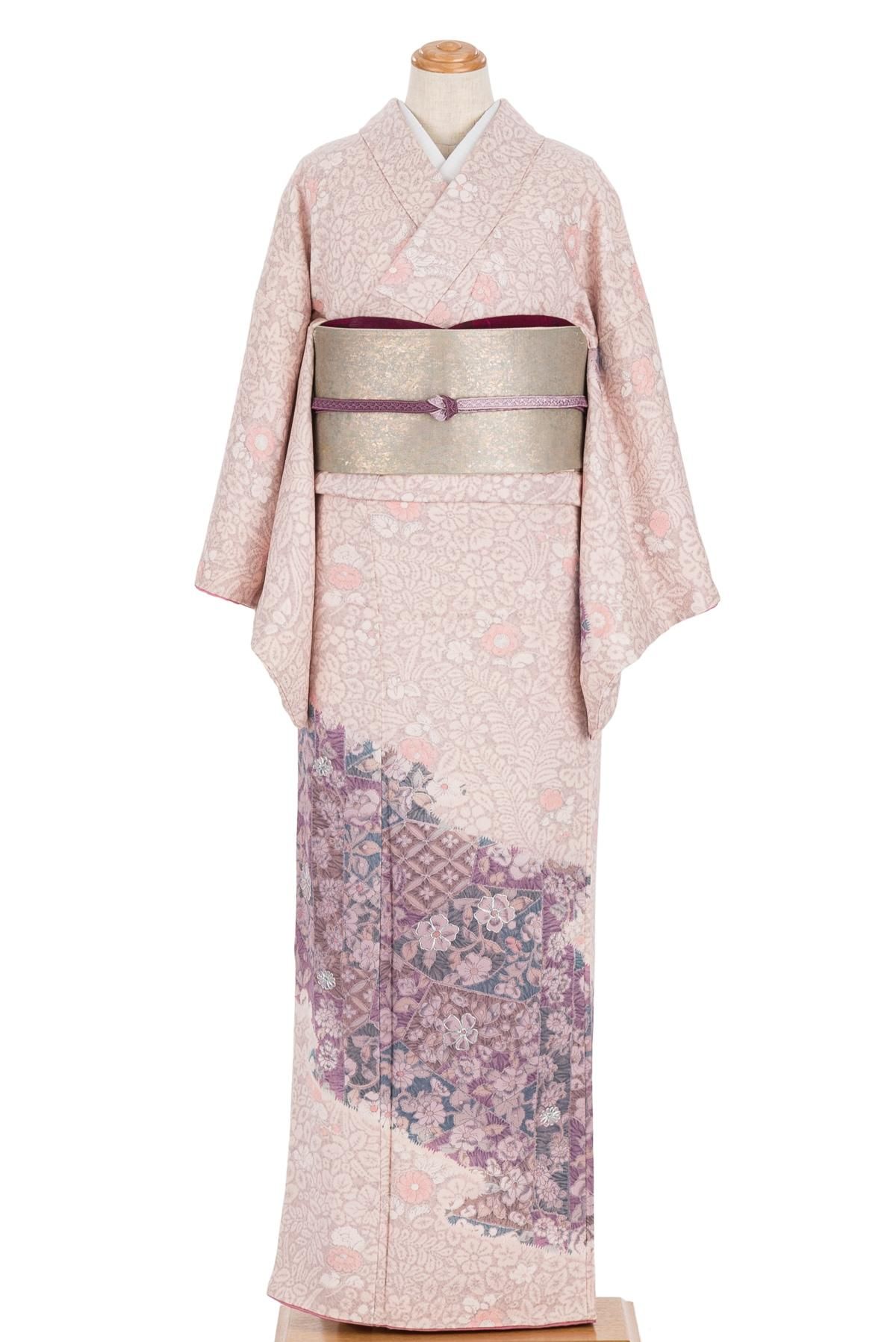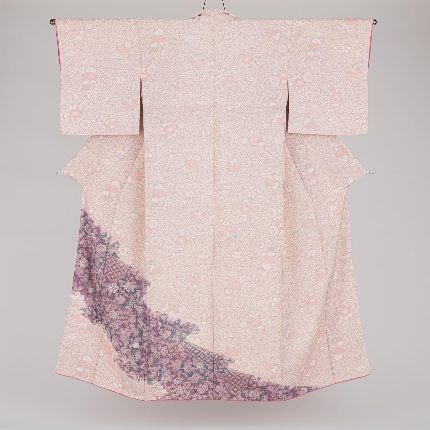 柔らかなピンク色の地に辻が花模様を染めた訪問着です。
