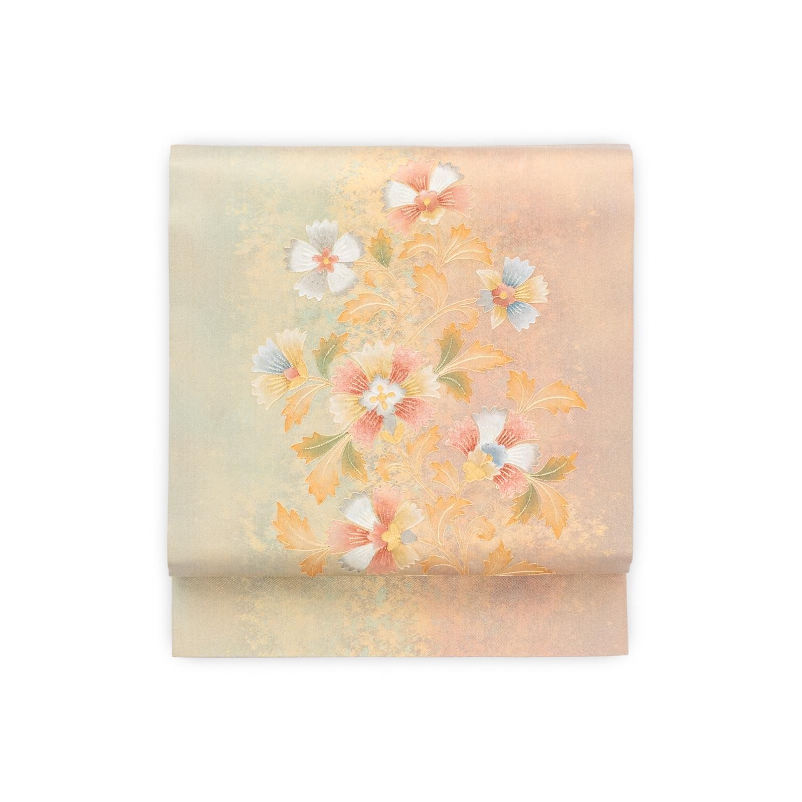 ぱっと咲いた明るい唐花が愛らしい九寸名古屋帯です。