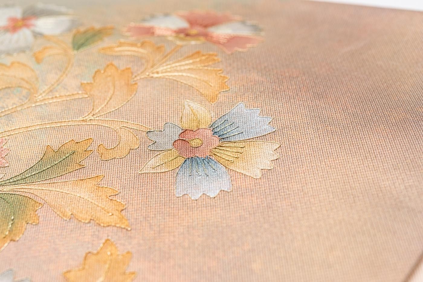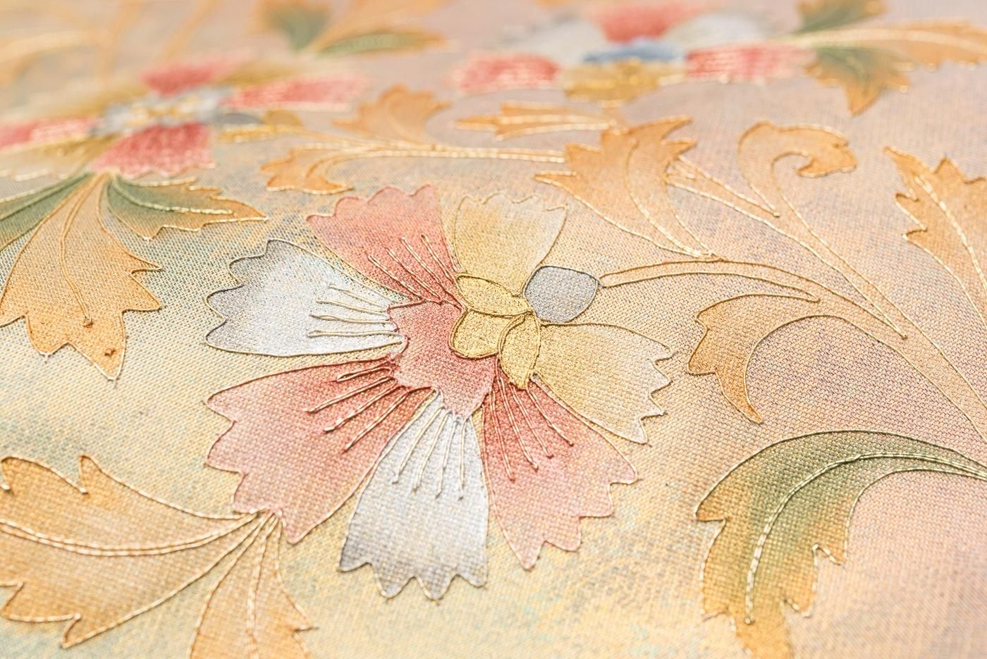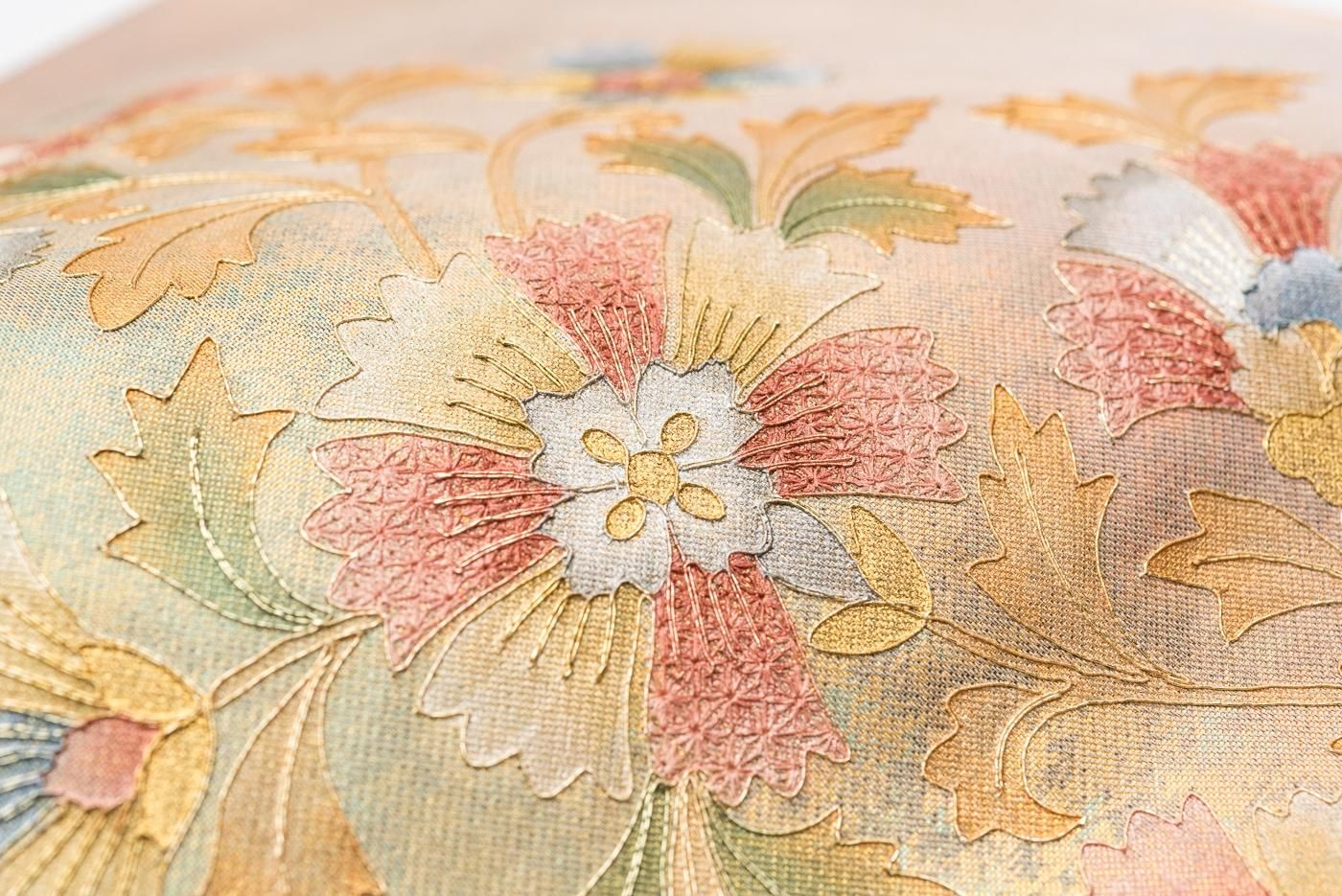 花をぐるりと縁取る金のラインは丁寧な刺繍。