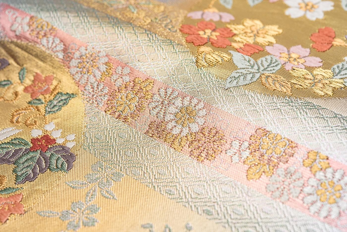 細い横段にも愛らしい菊花などが添えられた華やかで愛らしいデザインです。