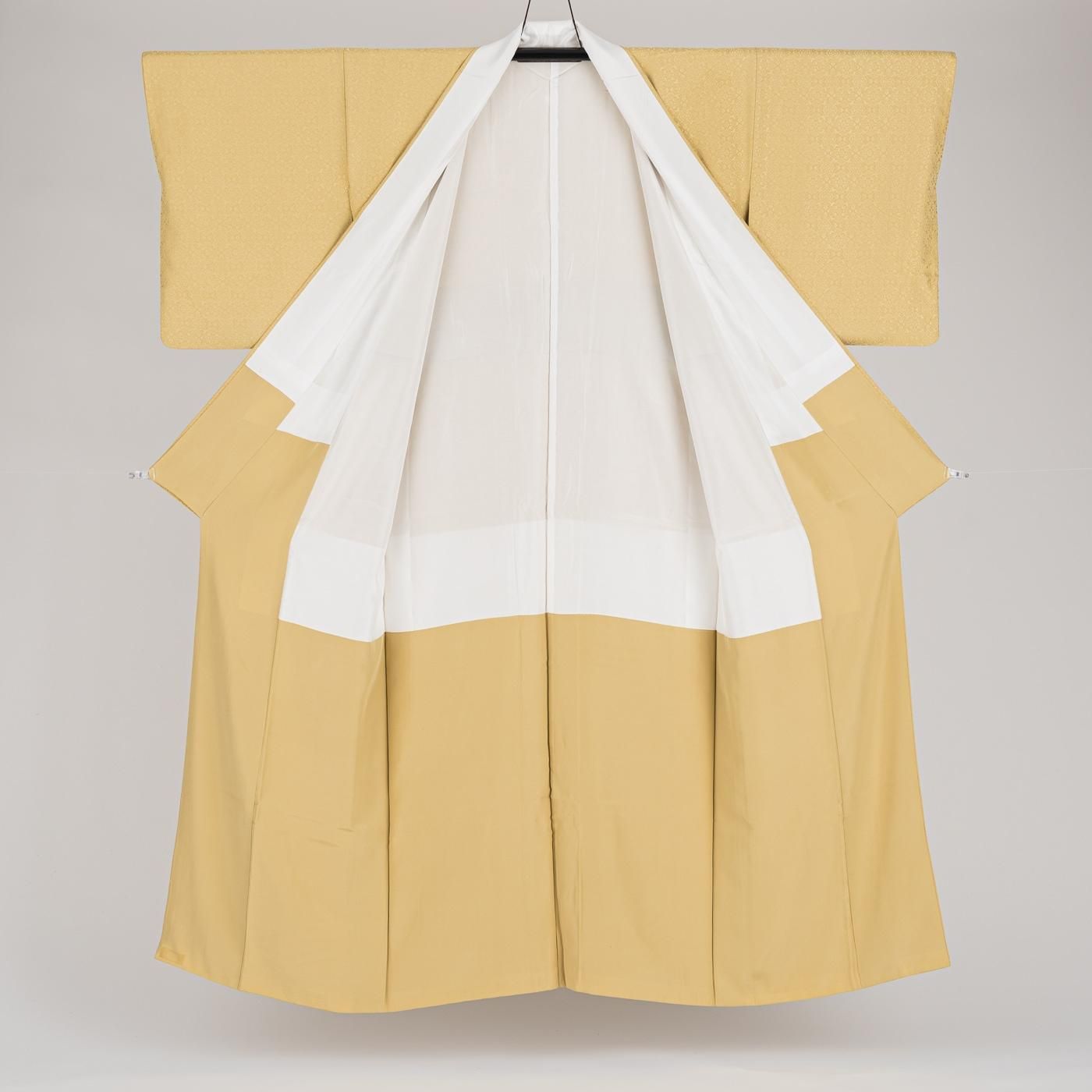 落ち着いた刈安色の色無地です。