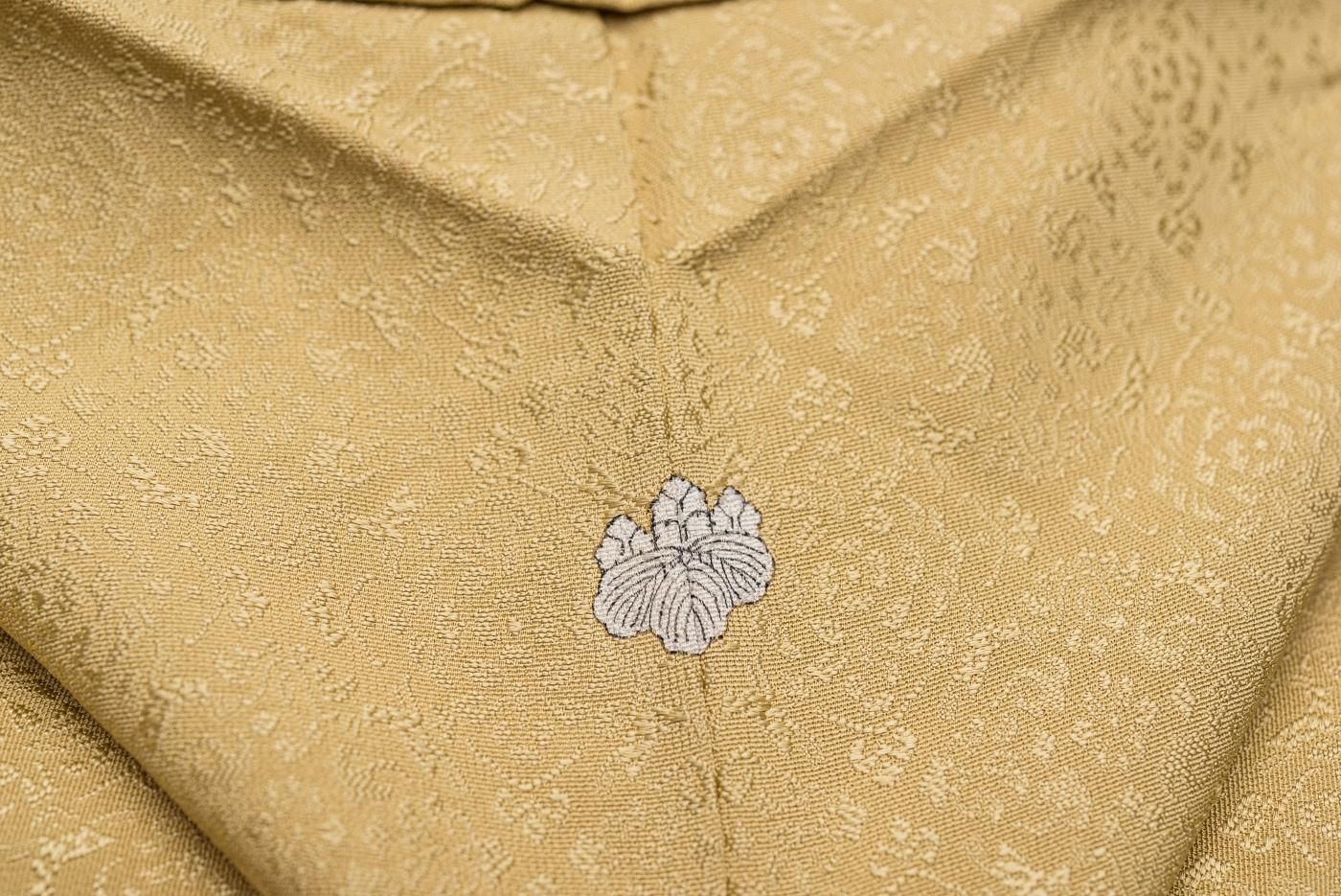 色無地 一つ紋 鬱金色 草木染