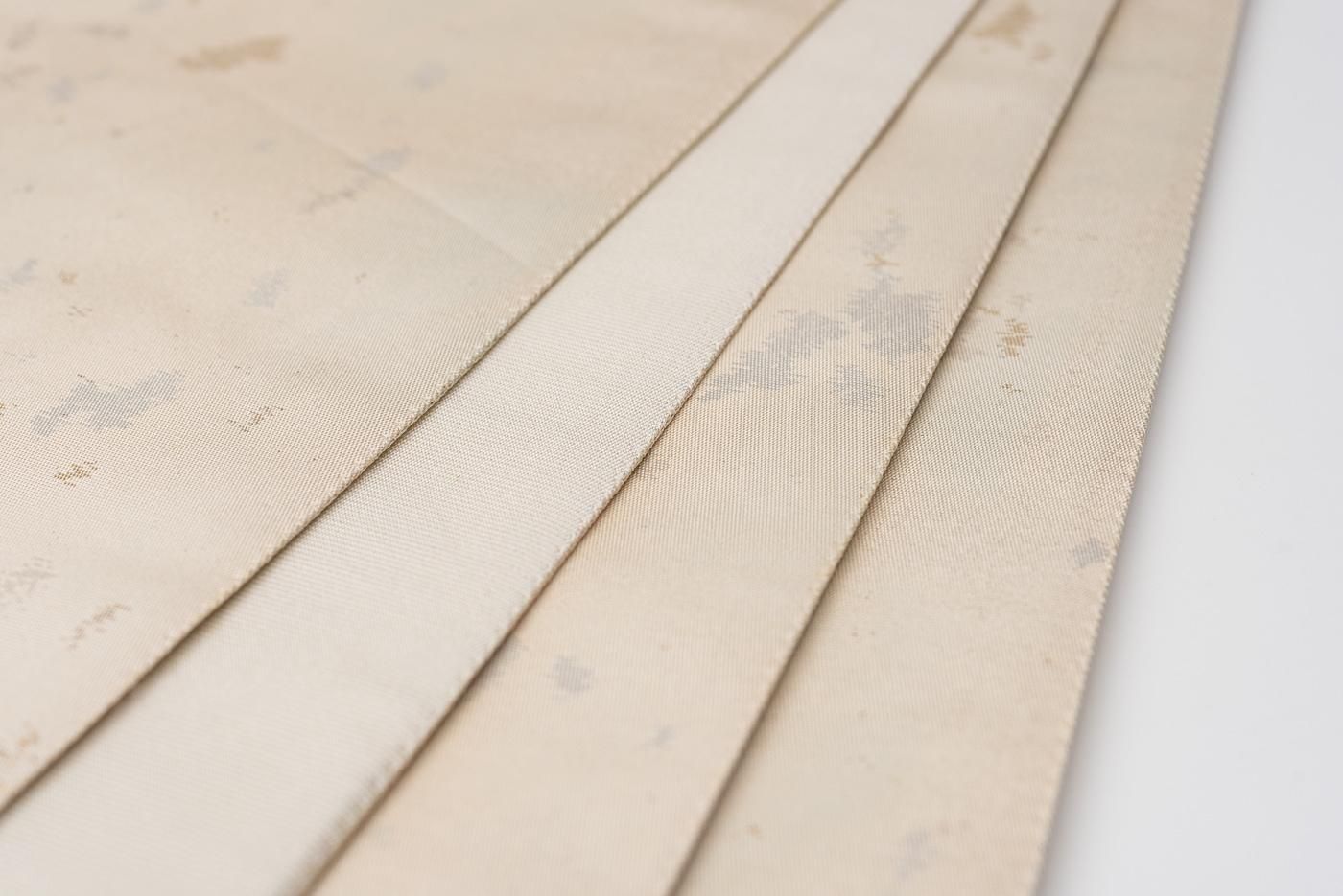 白地に銀の紙吹雪模様がほんのり浮かぶ袋帯です。