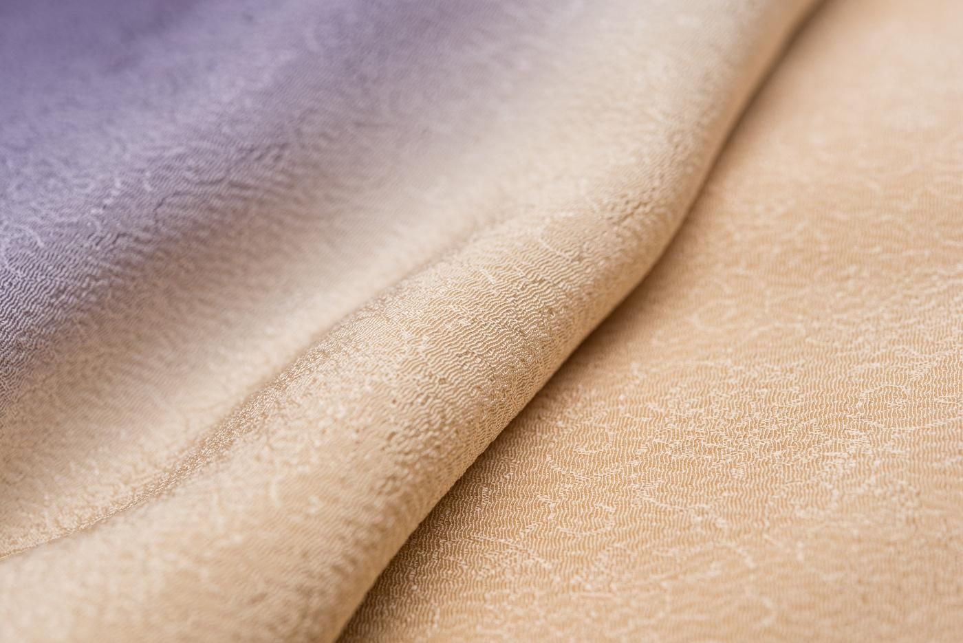 ベージュから紫へと色が変化する暈しの付下げです。