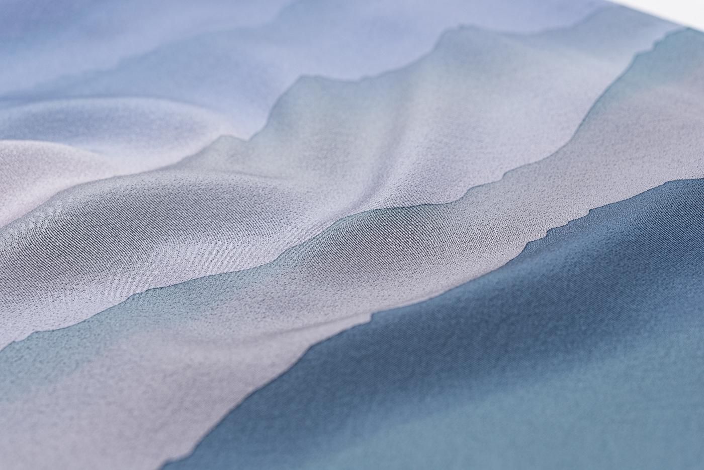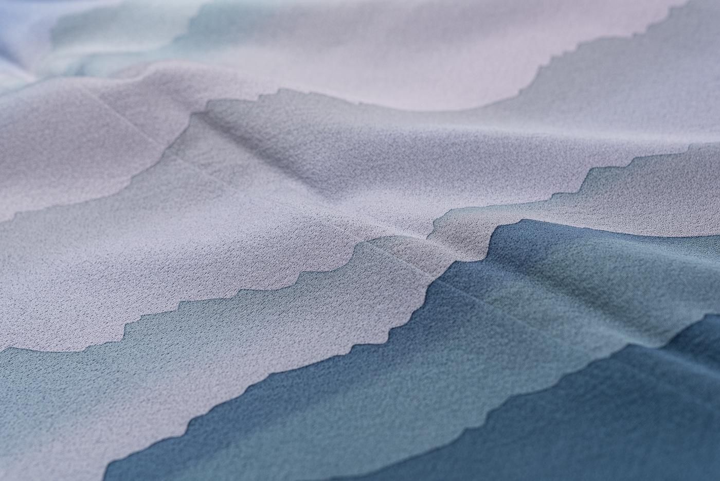 花色の地に重なる遠山風景を描いた幻想的で美しいデザインです。