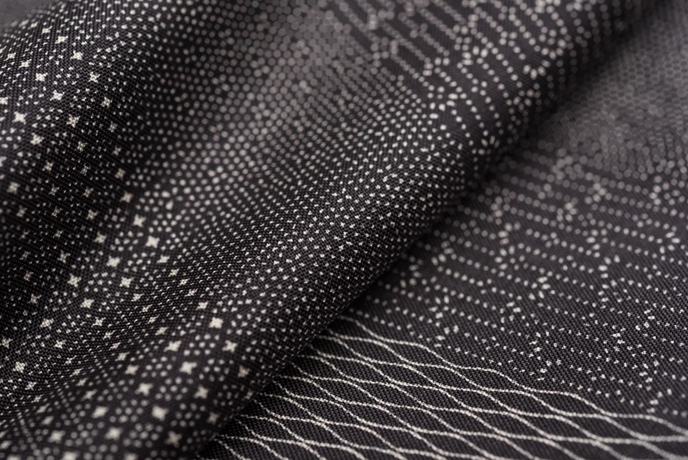 遠目には縞模様がきりりと粋に見えますが、近付けばたっぷりとした贅沢な柄付けがなんとも華やかに映ります。