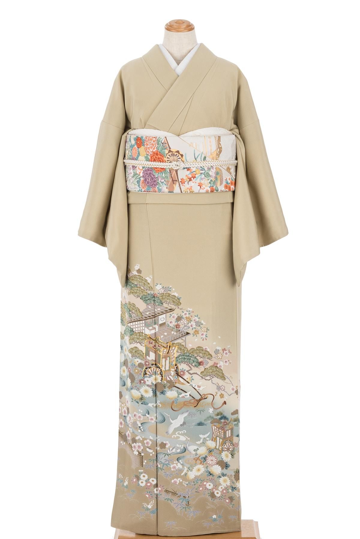 【売り切れ】 色留袖 一つ紋 御所車に鶴