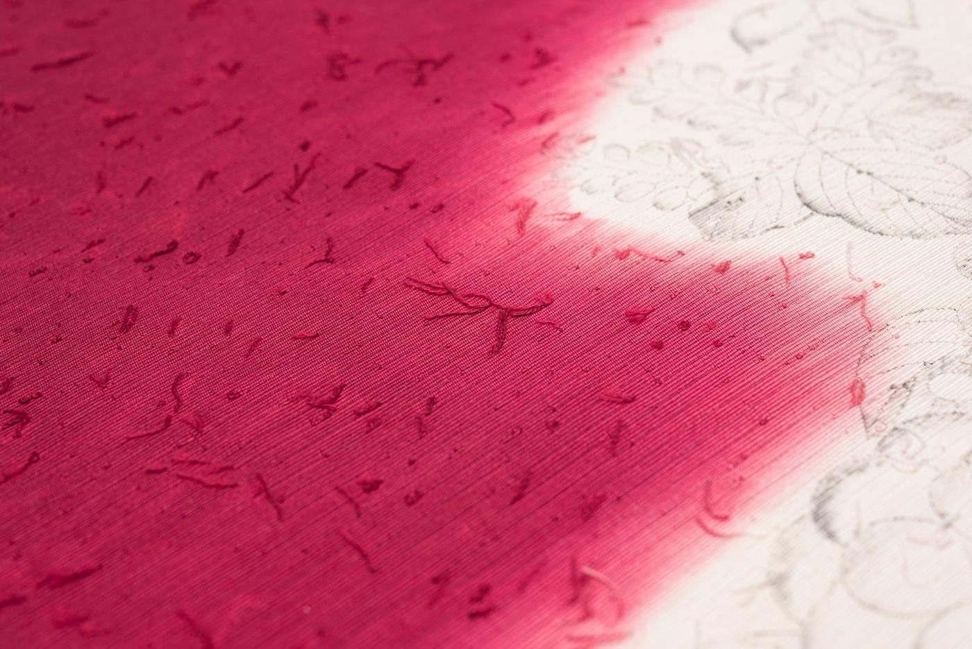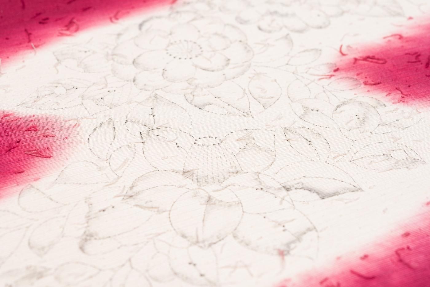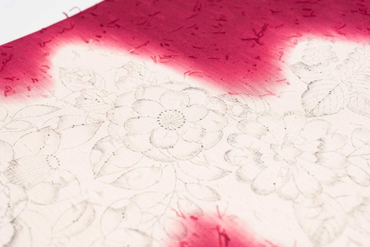 霞の奥にぼんやりと浮かび上がる辻が花文様が柔らかで優しい雰囲気です。