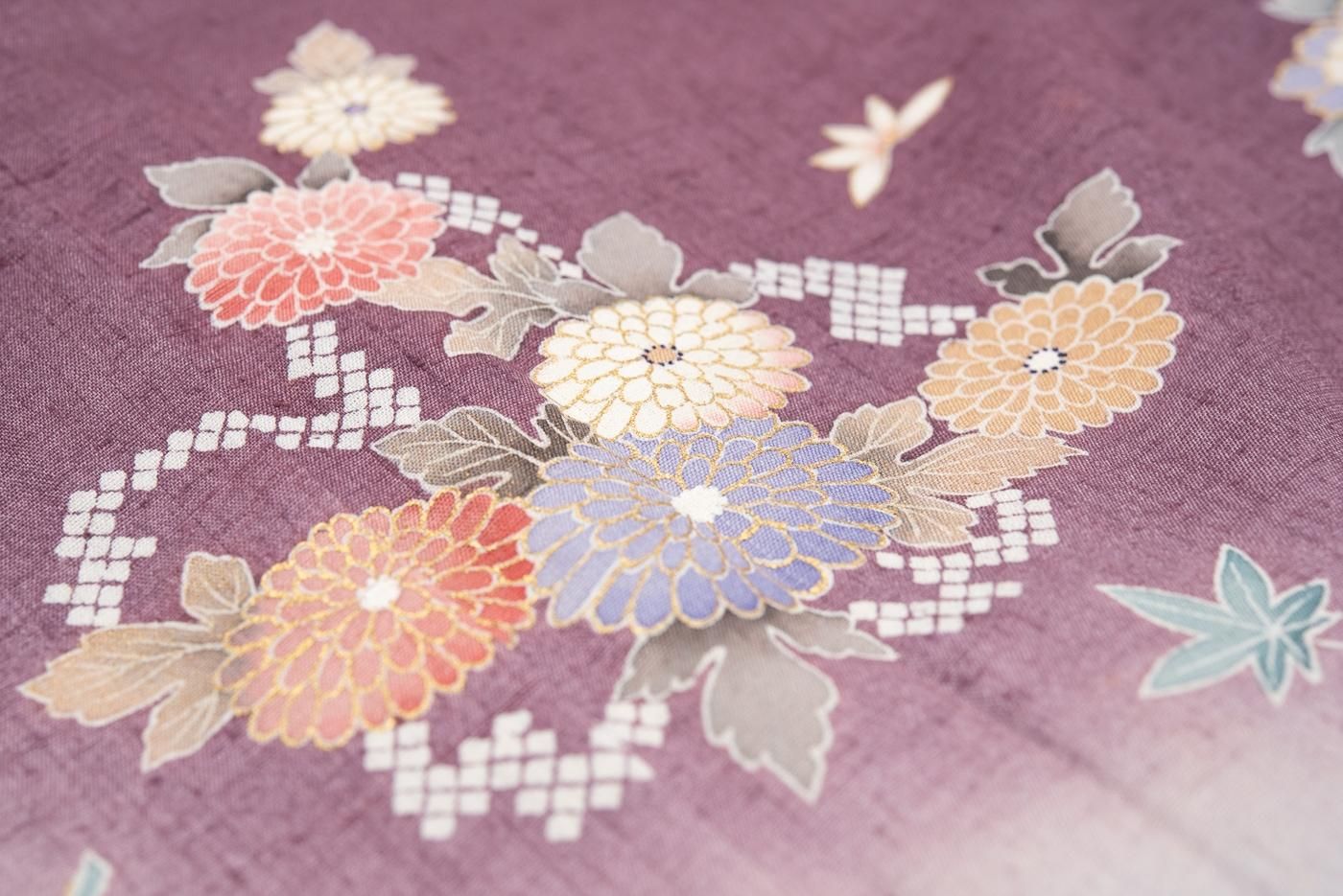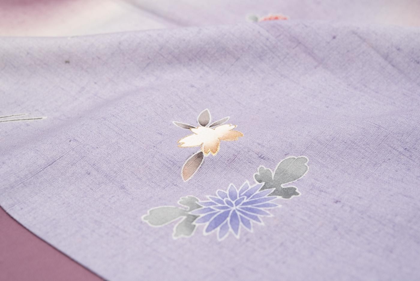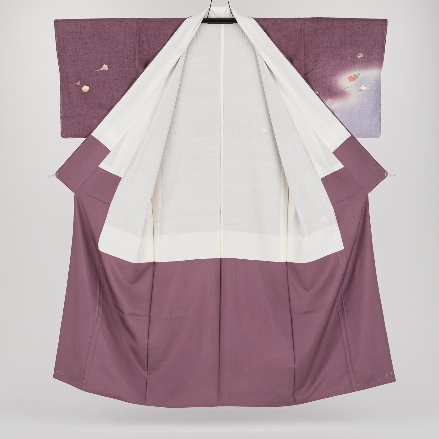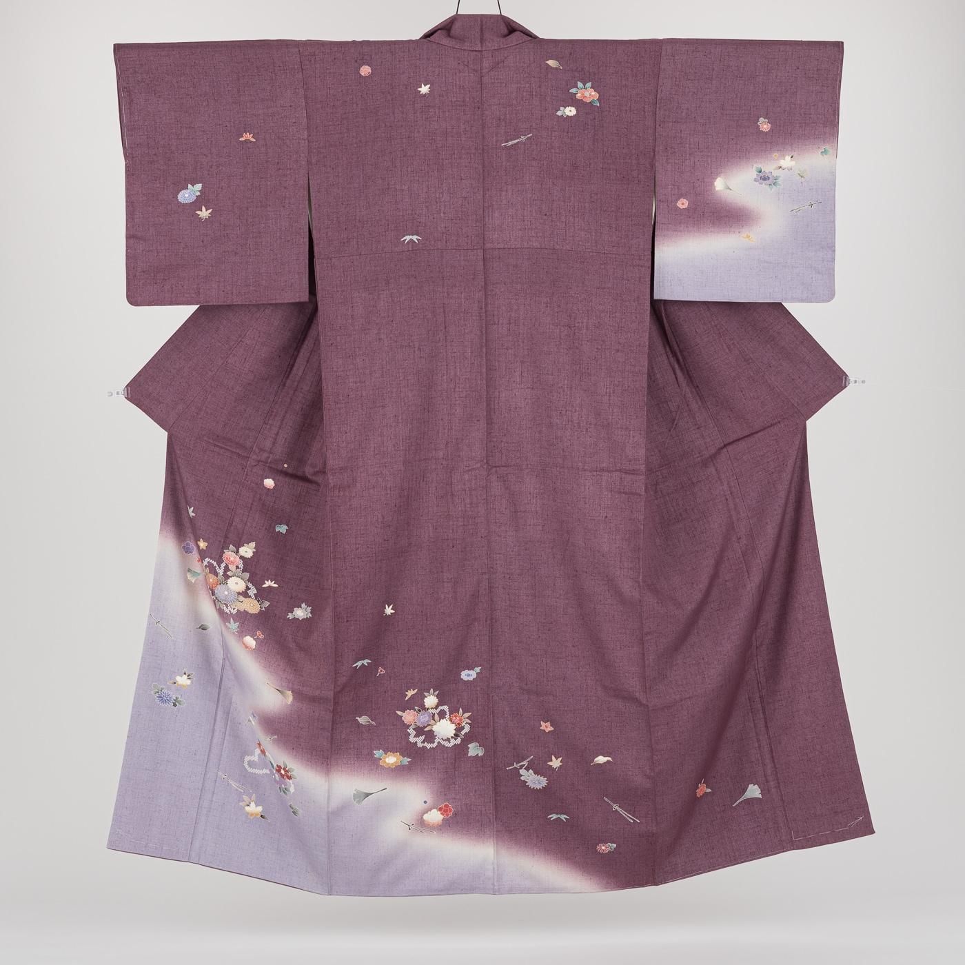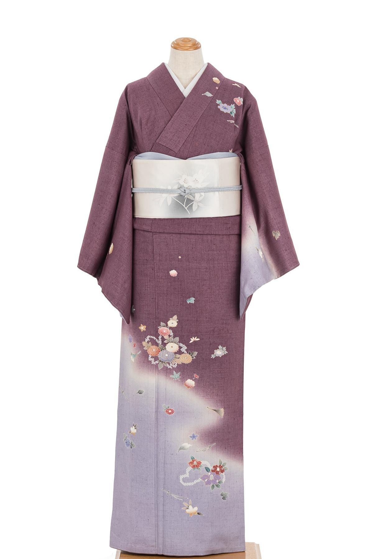 紫二色のグラデーションが印象的な紬の訪問着です。