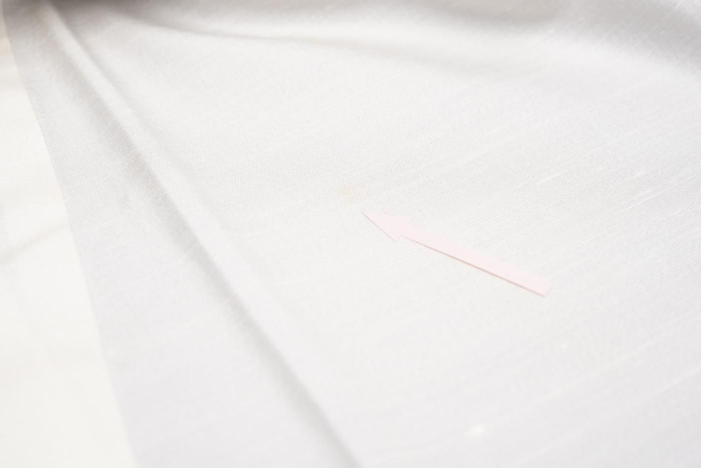 左前身頃、肩山下29cmの付近に赤い変色があります。