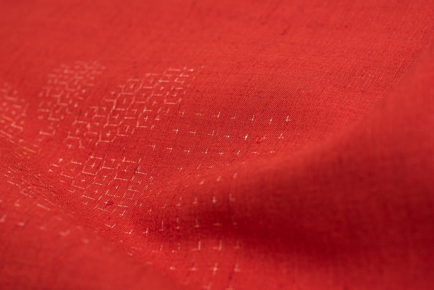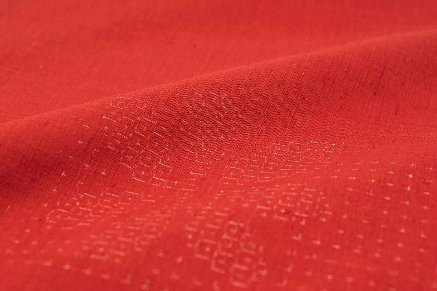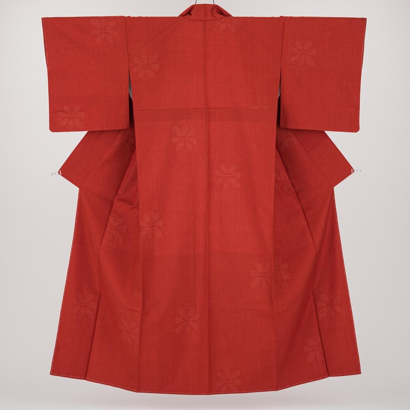 紬 朱赤地 花模様