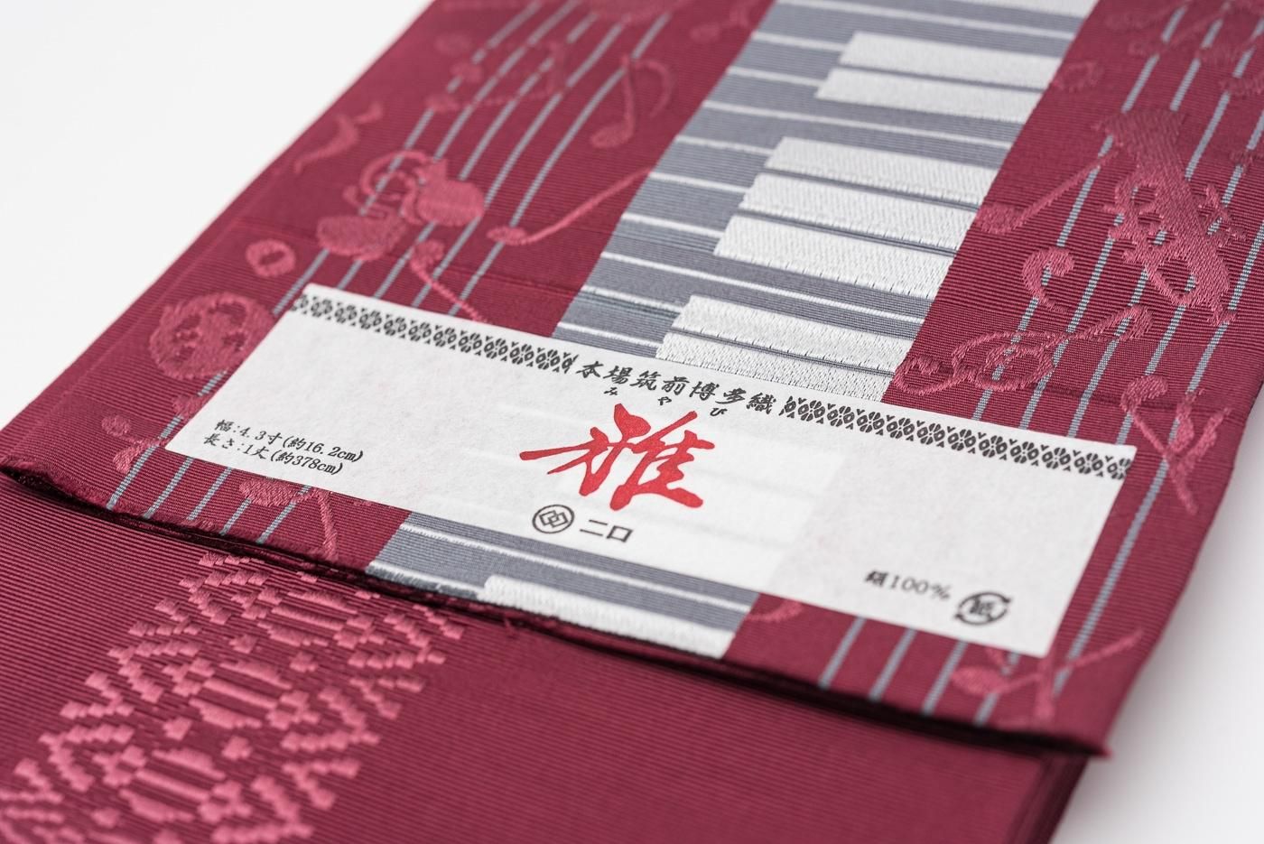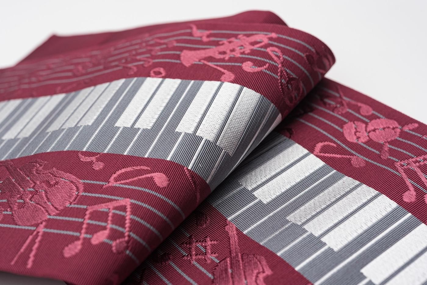 森博多織 長尺小袋帯 ピアノ Wineの商品写真