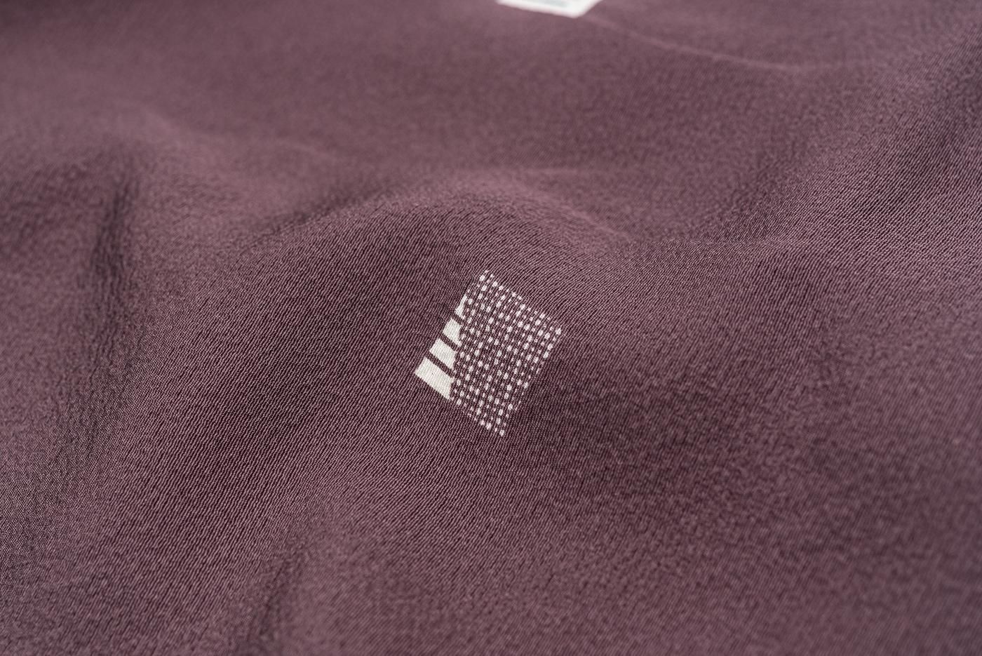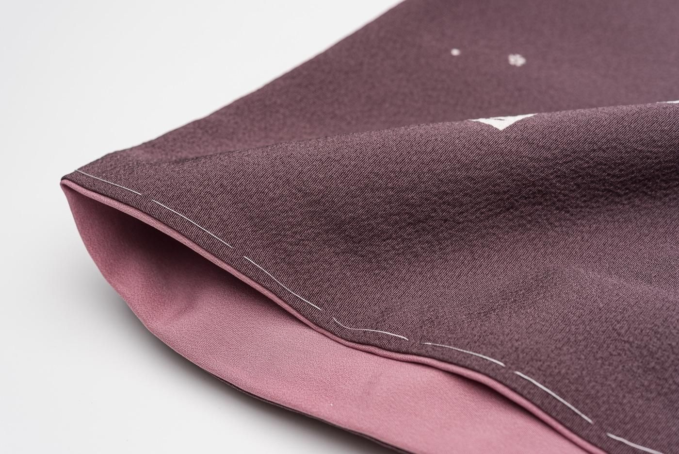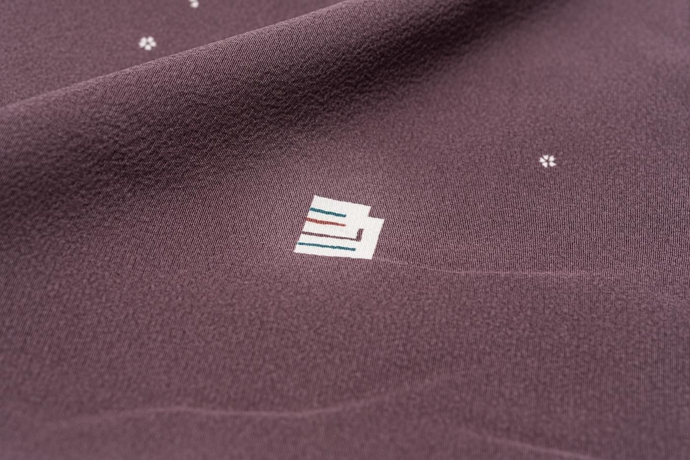 やや黄味がかった落ち着いた紫の地に源氏香模様を染めた小紋の着物です。