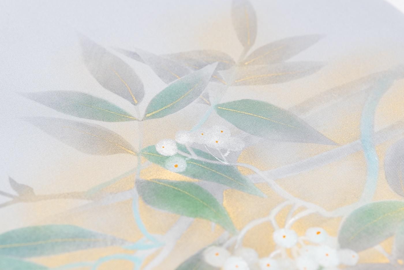 白南天を描いた塩瀬の九寸名古屋帯です。