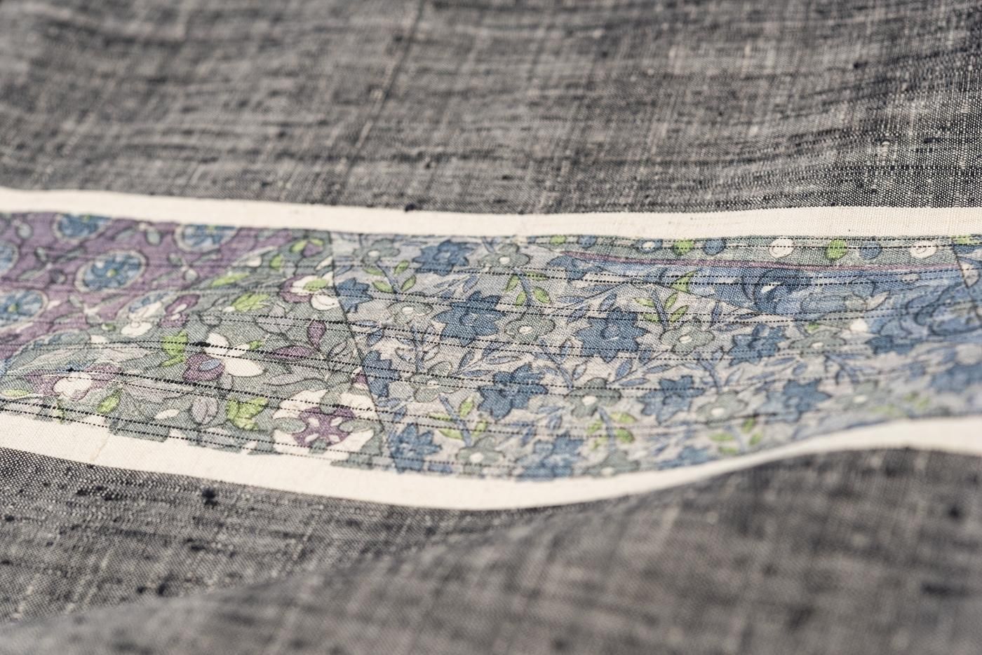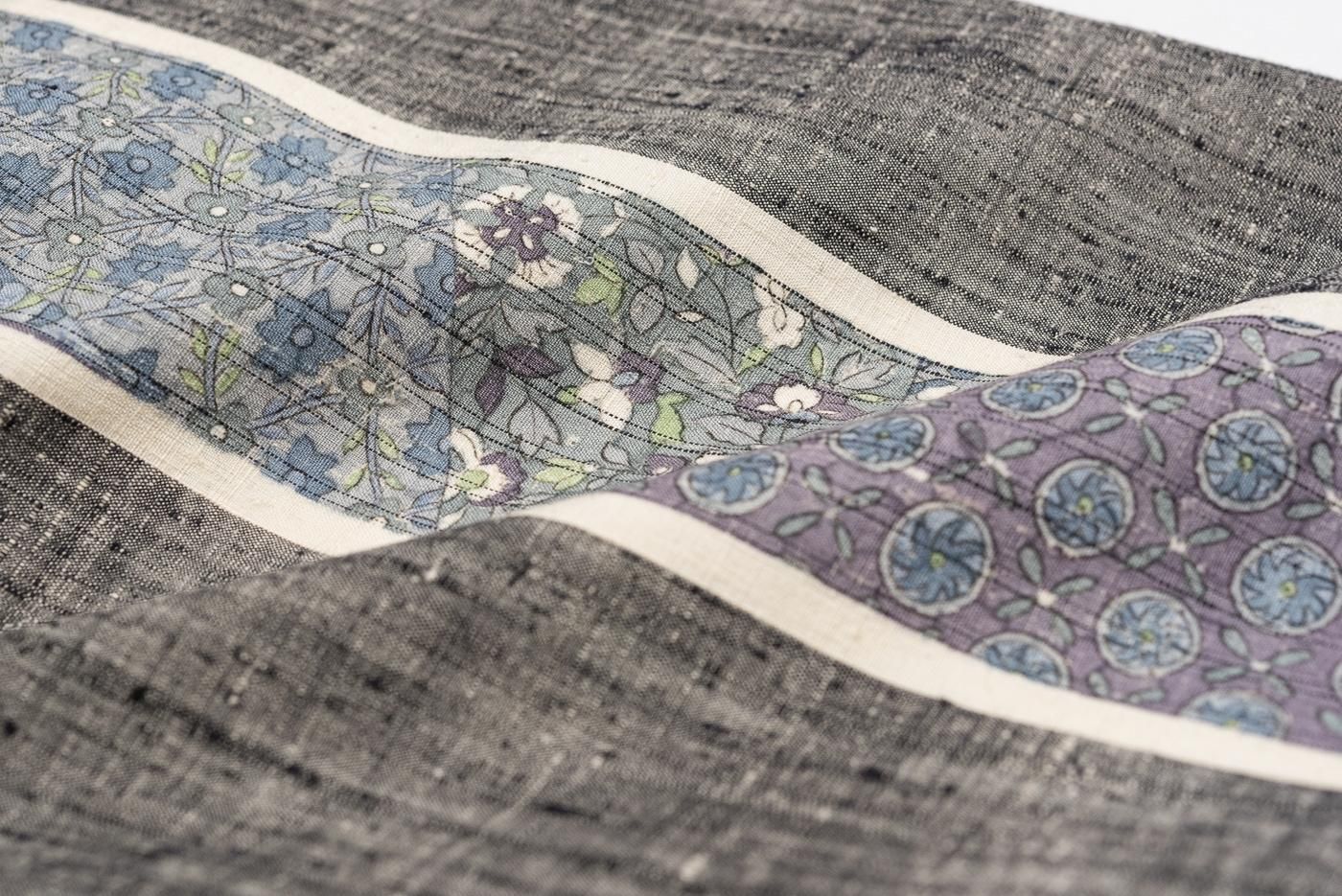 大胆な縞と繊細な更紗模様の組み合わせが印象的で楽しいデザインです。
