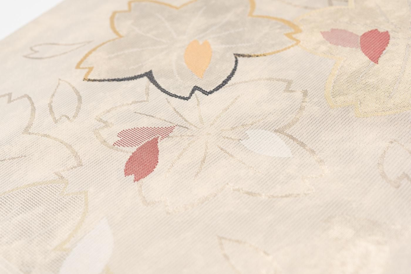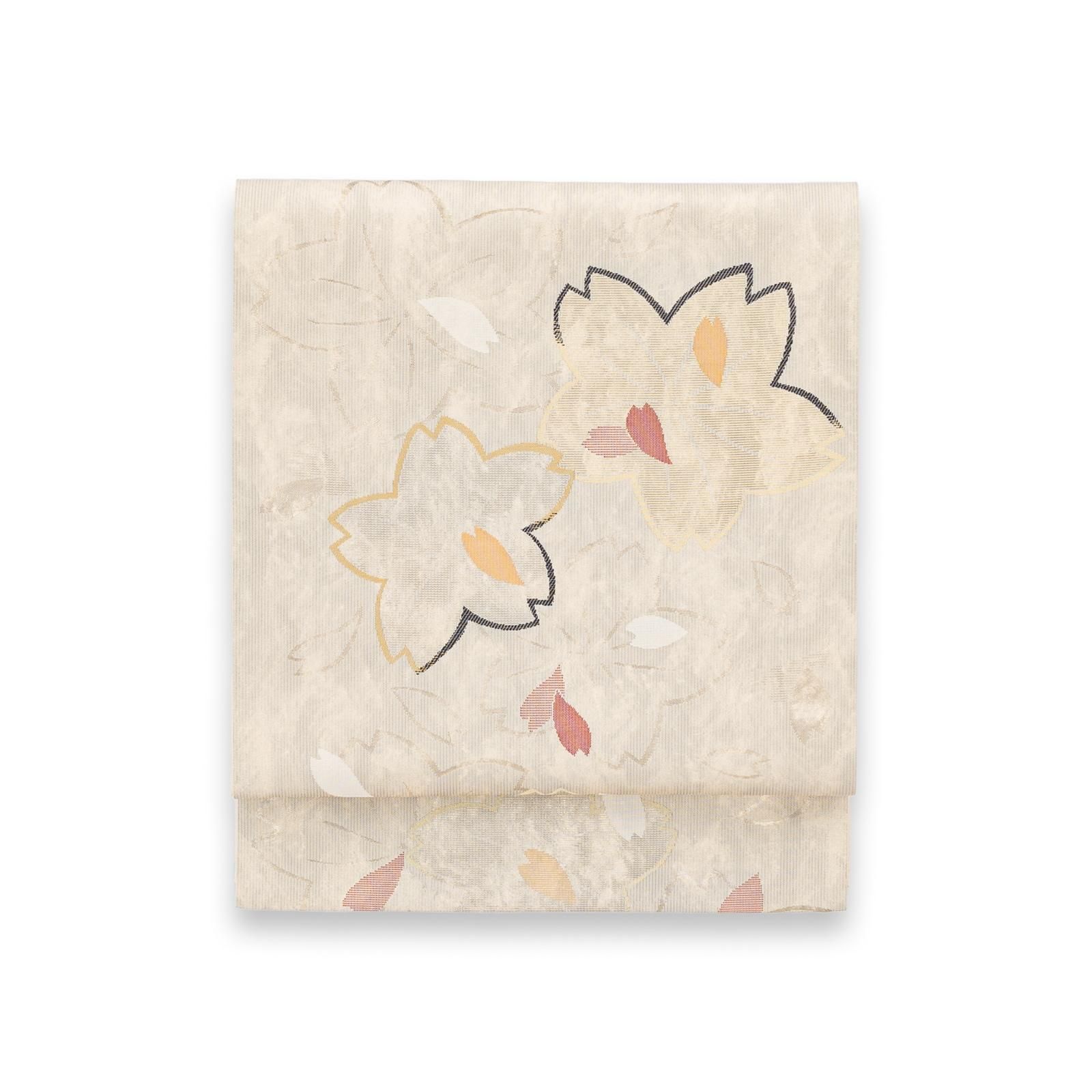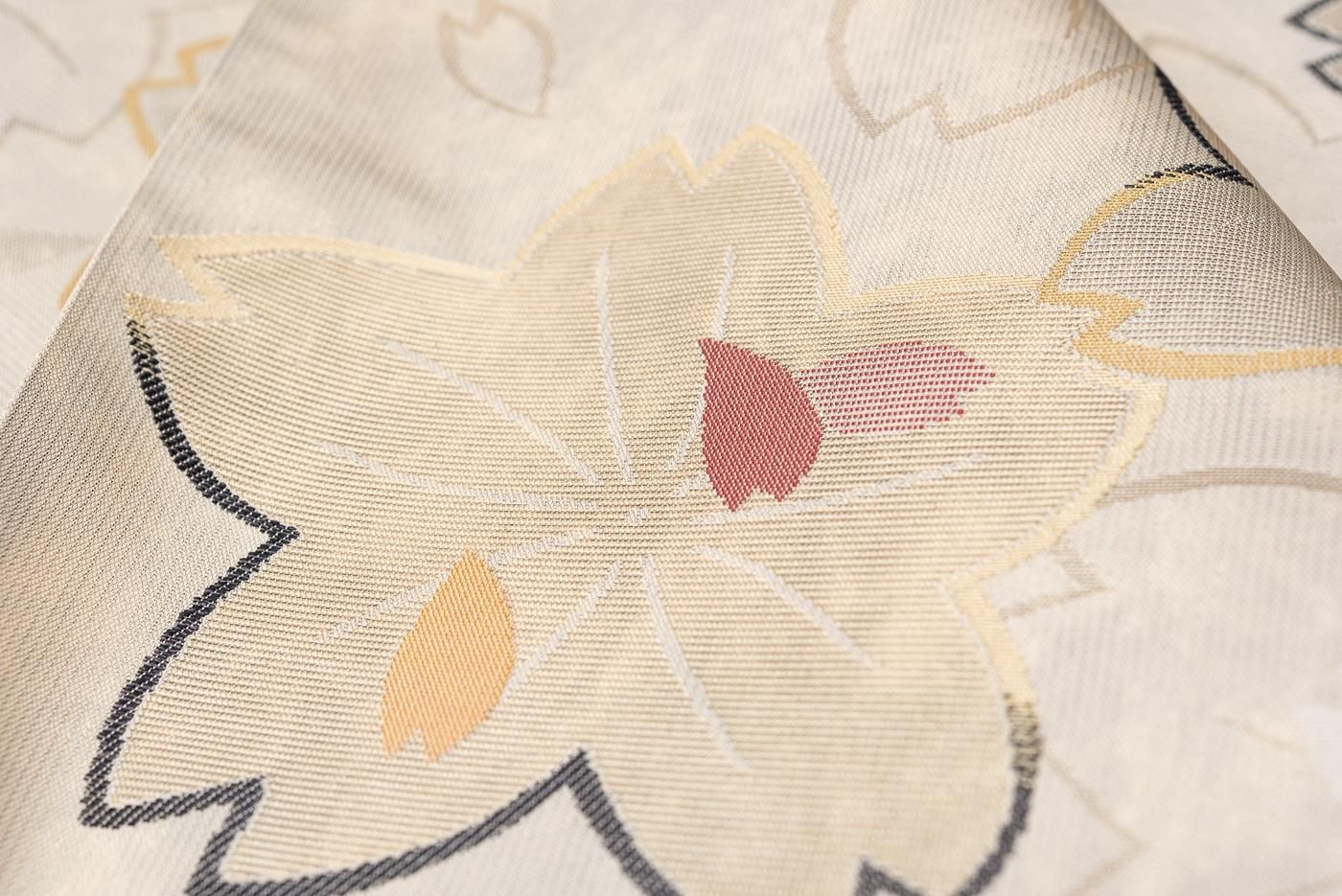 桜のシルエットに花びらを添えて織り出した袋帯です。