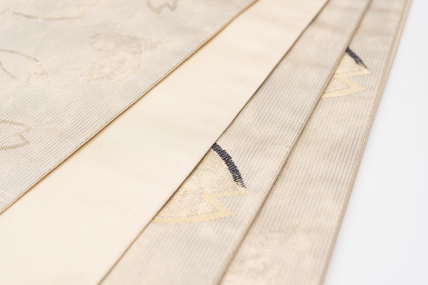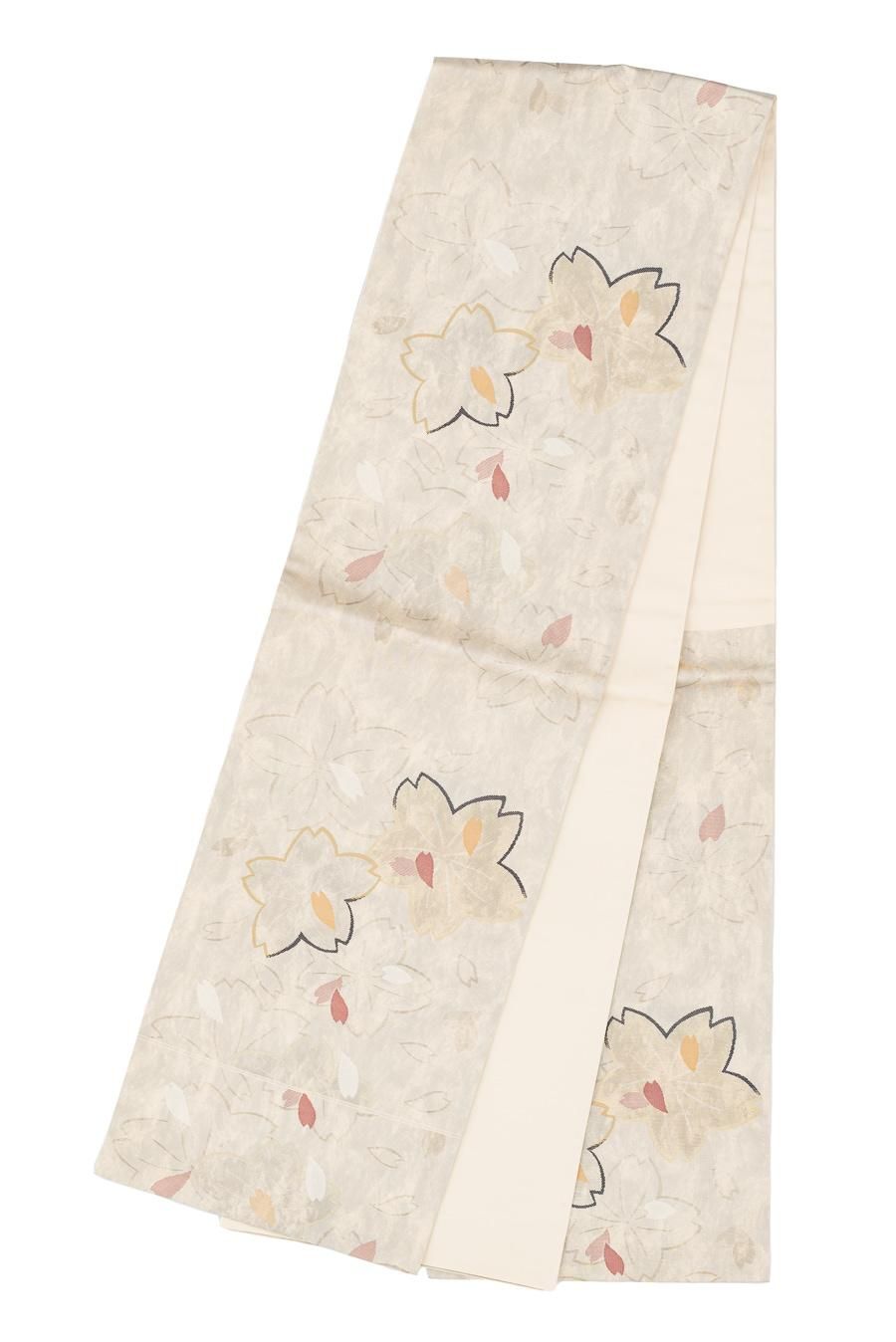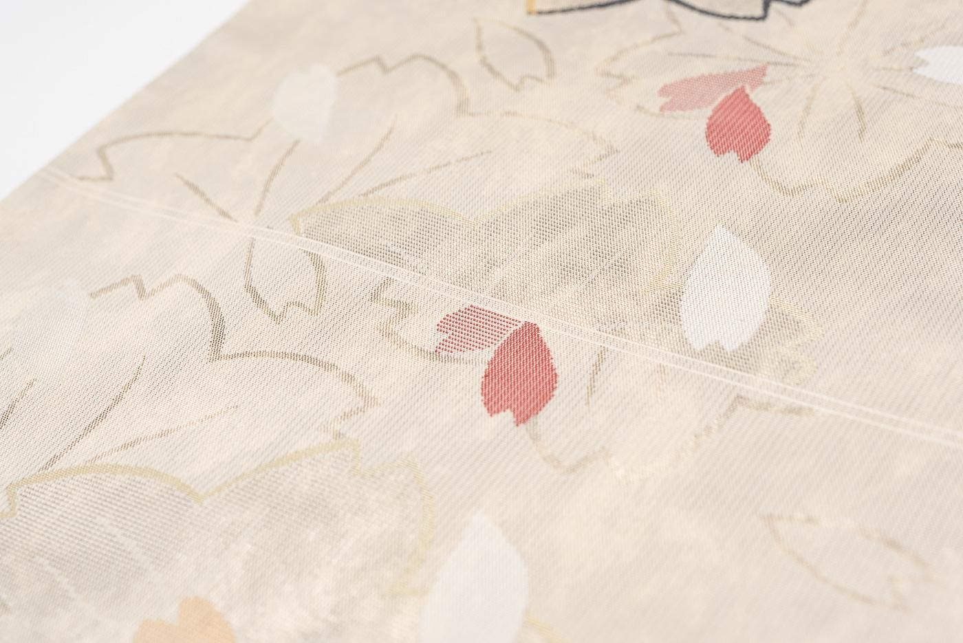 桜のシルエットに花びらを添えて織り出した袋帯です。