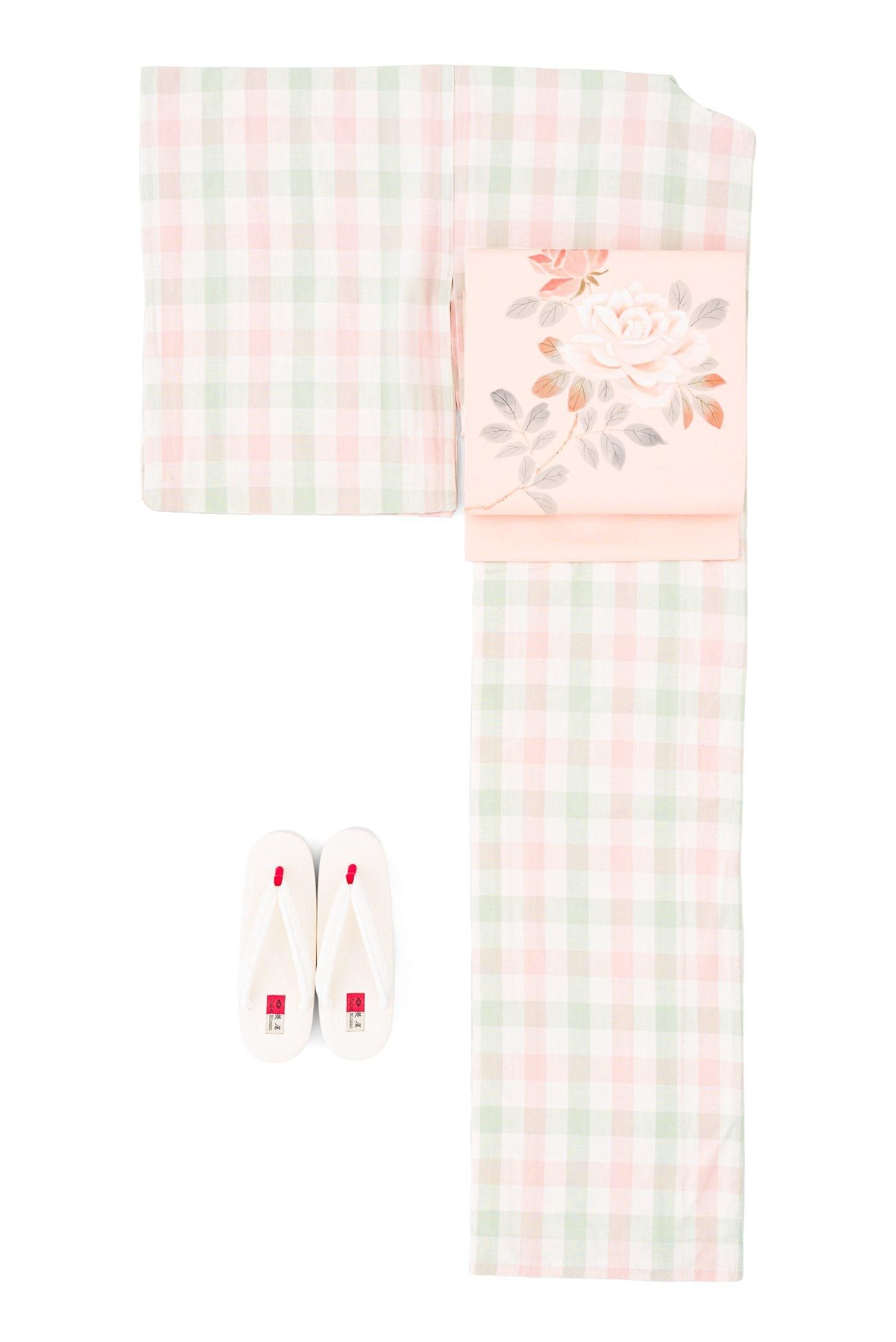(お仕立て)新品 片貝木綿 ピンクブロックチェックの商品写真