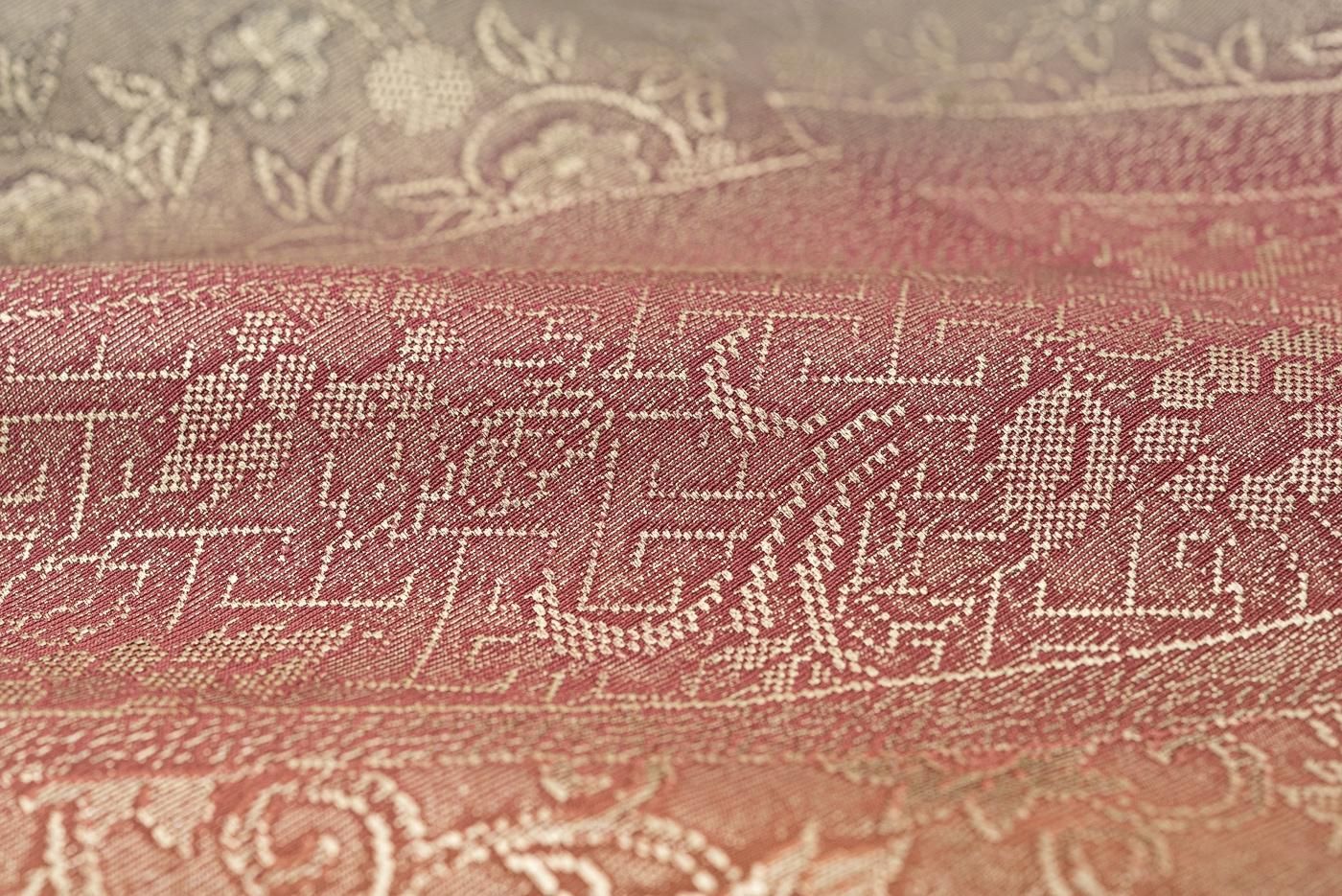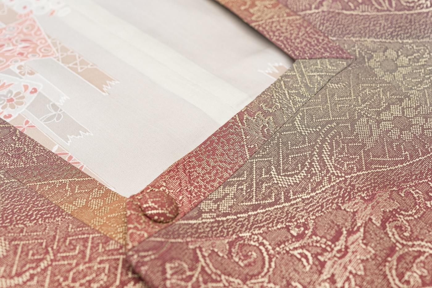 全体に淡い光沢感があり渋いお色目ながら華やかさも感じさせるデザインです。