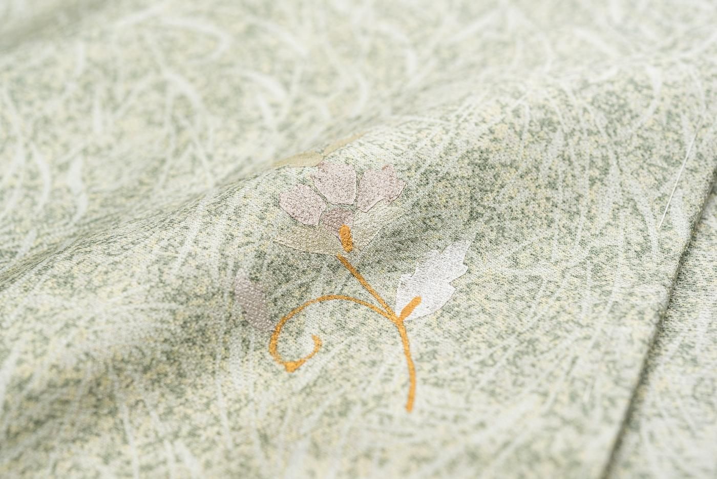 箔で表した小花模様が愛らしい小紋の着物です。