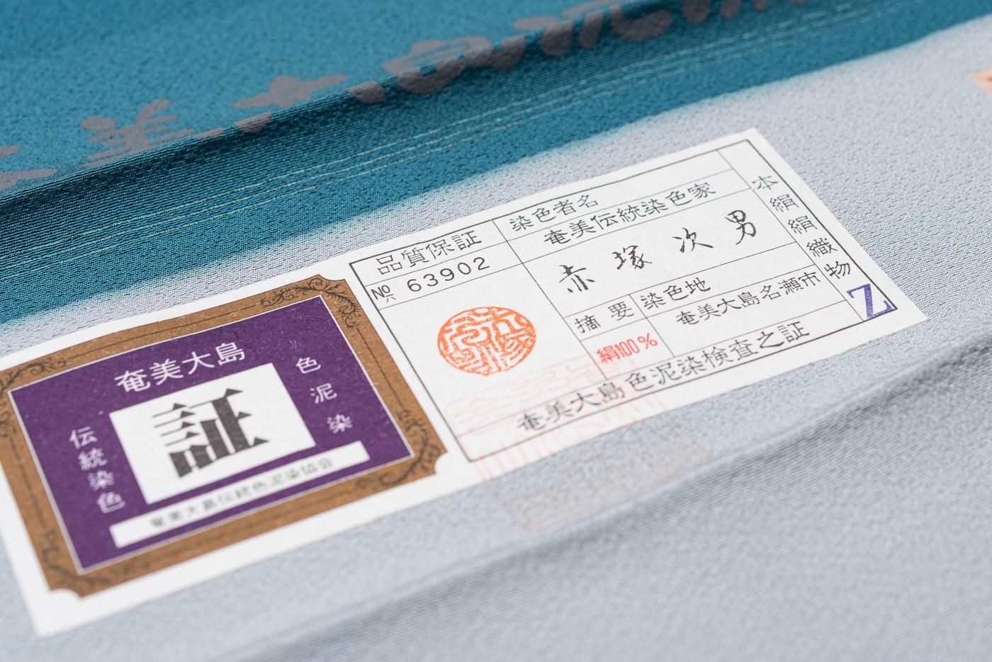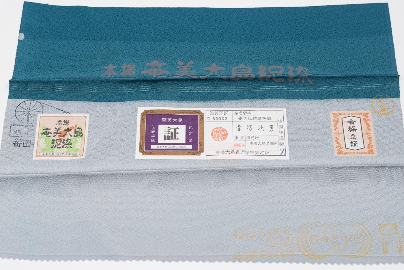 色無地 一つ紋 赤塚次男 本場奄美大島泥染 高麗納戸色の商品写真