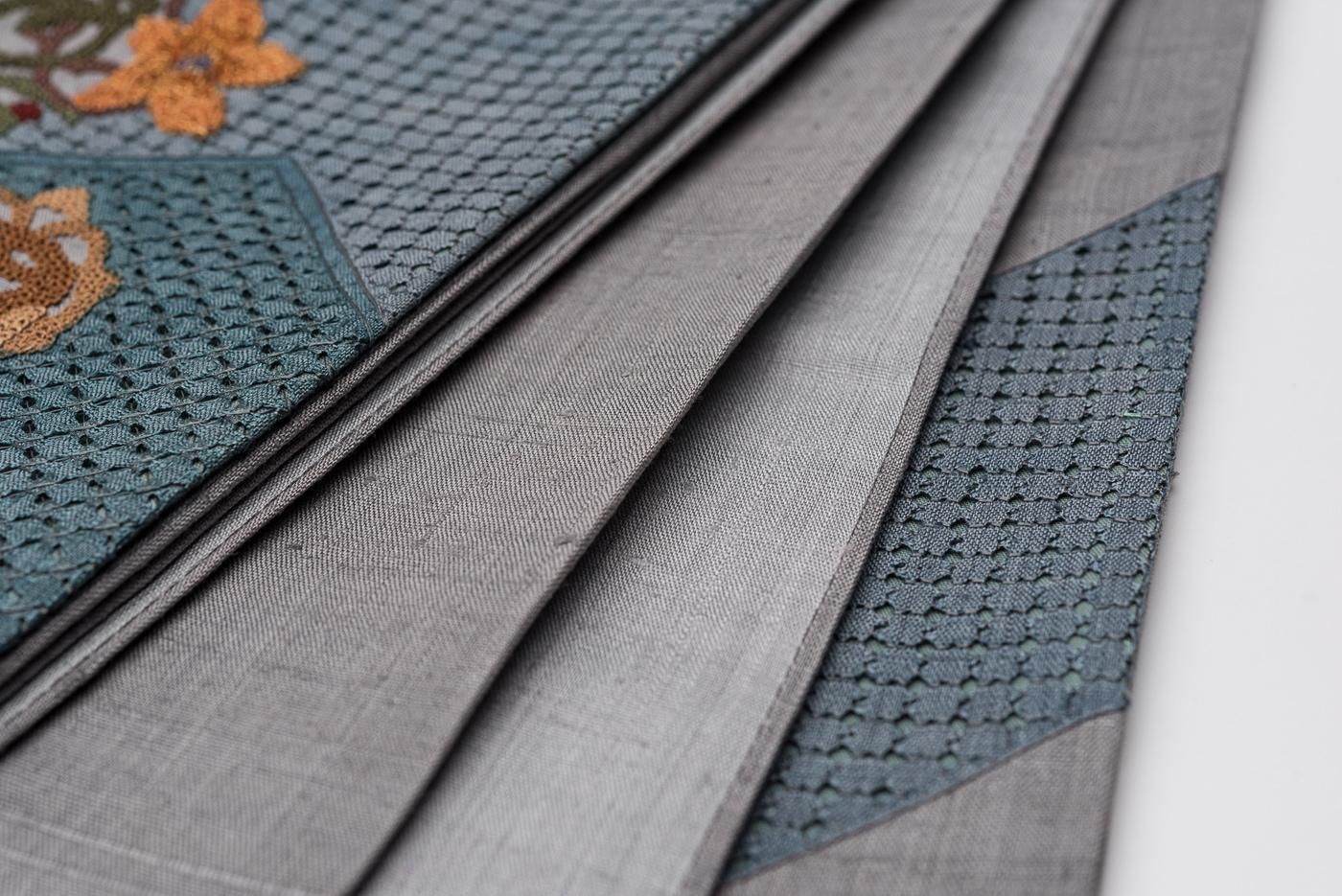 刺繍が作り出す凹凸が染めや織りとはまた一味違う美しさを感じさせます。